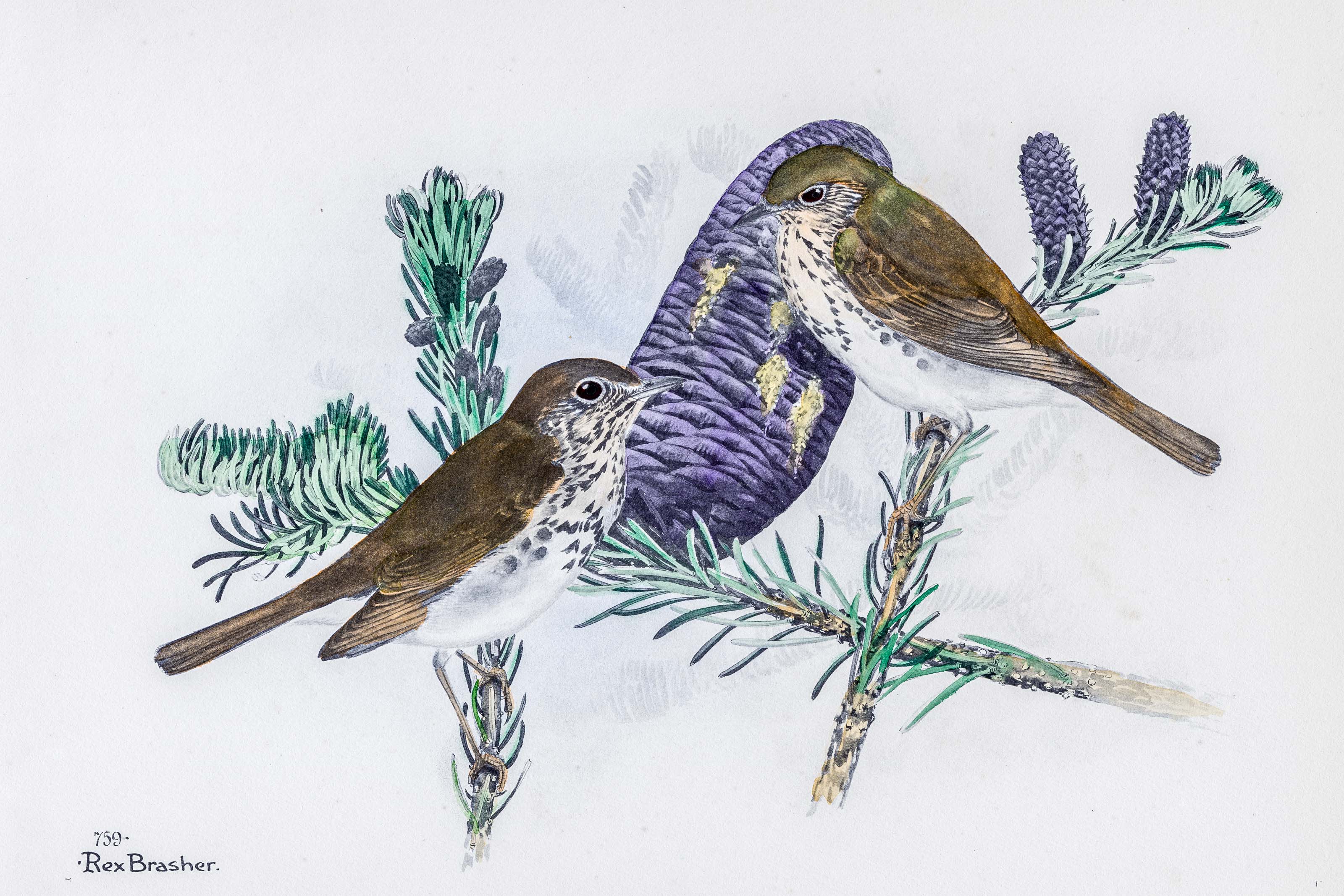 Many a crime is perpetrated under the thin excuse of science. of science. The reddish tail of HERMITS renders field identification easy even to the beginner and it would be a thoro-going villain indeed whose shot blasted one of these Wood Fairies into a mess of gory feathers. That goes as it lays! I'm going to lie on the further side of the Styx with a special shotgun shooting red hot pellets and sieve every single Thrush murderer.