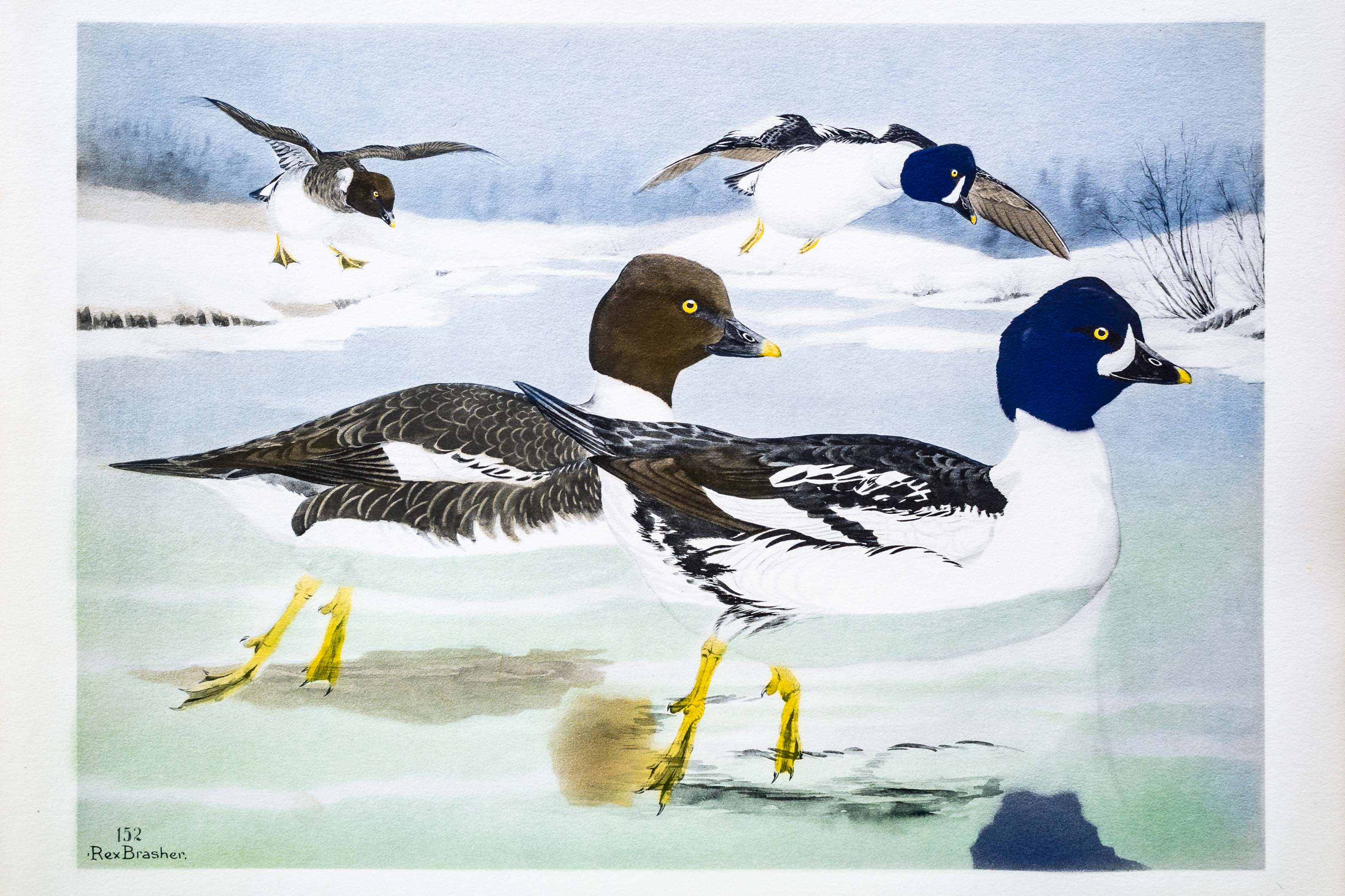 By the middle of April each open lake in British Columbia has its conspicuous flock of 40 or 50 courting BARROW GOLDENEYES.