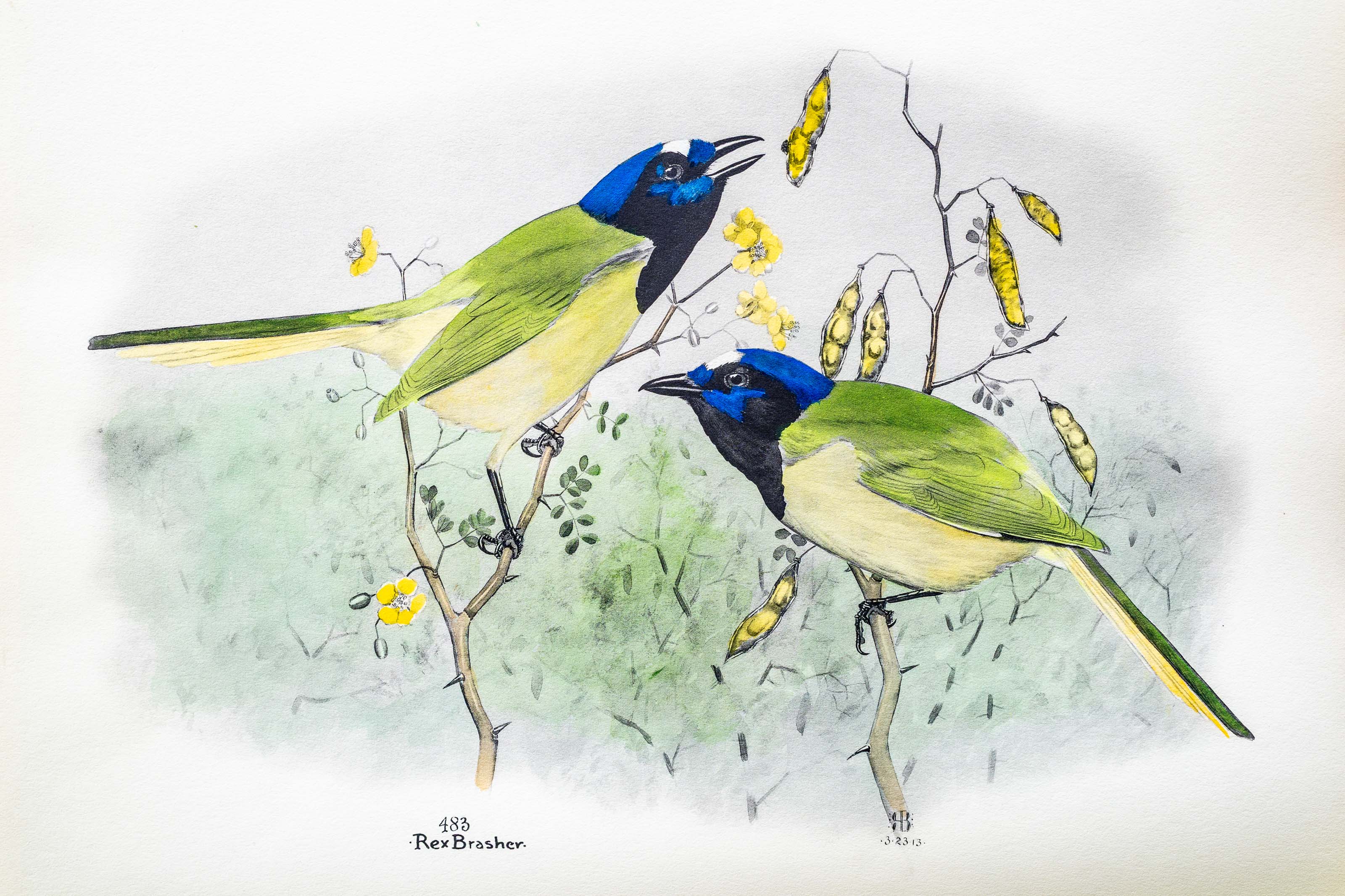 Altho their apparel is entirely different in color from other Jays, there is little variance in habits of GREEN JAYS. Raising chickens or gathering the eggs is a matter of constant vigilance by the farmer within the domain of these thieves.