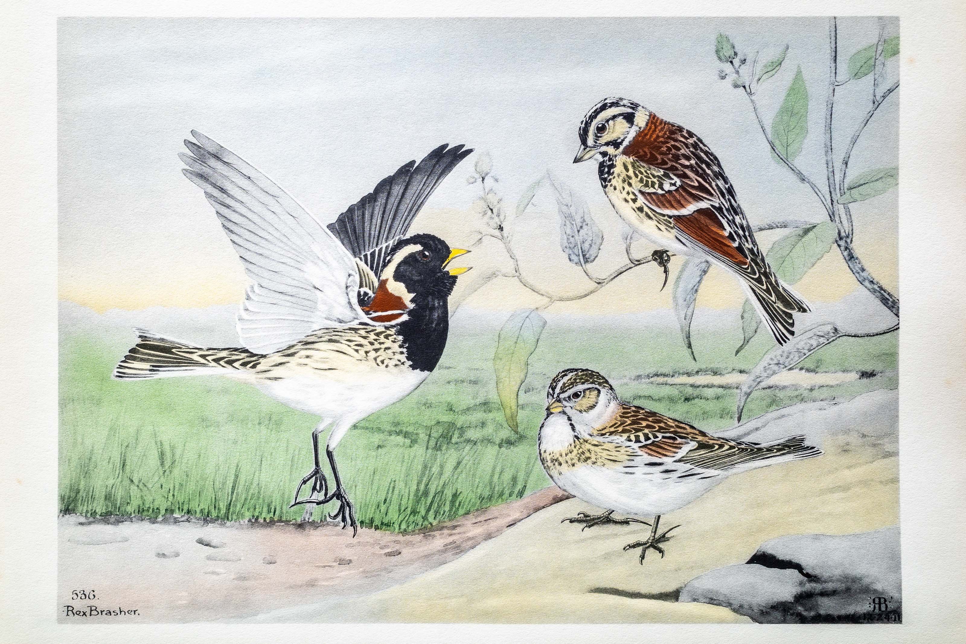 LONGSPURS are among the few birds which sing for minutes at a time while awing. Many small birds have a short air song but few continue their solo for an extended period.