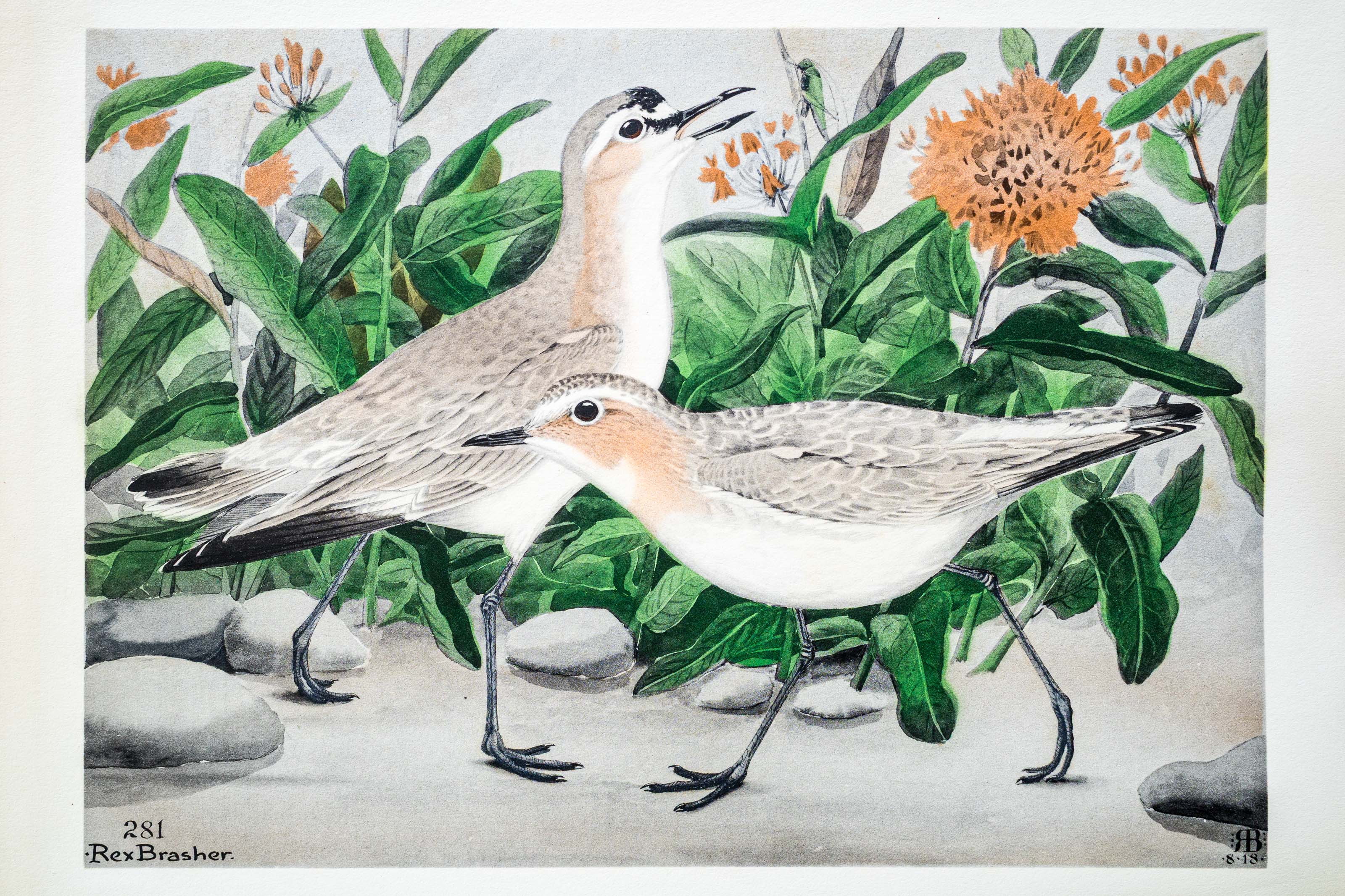 Differ from other members of the genus in preferring dry upland prairies or sterile sandy deserts of the west. They are never found on the beaches, marshes or mud flats. The first egg is laid without any attempt at a nest, in the open away from any form of shelter. When the next two eggs are deposited a rude attempt at a nest is attempted with dried grass. They are quite inconspicuous birds, with a low pleasing whistle. Their habit of gathering in compact flocks was taken advantage of by poor hunters, two shots often killing thirty or more.