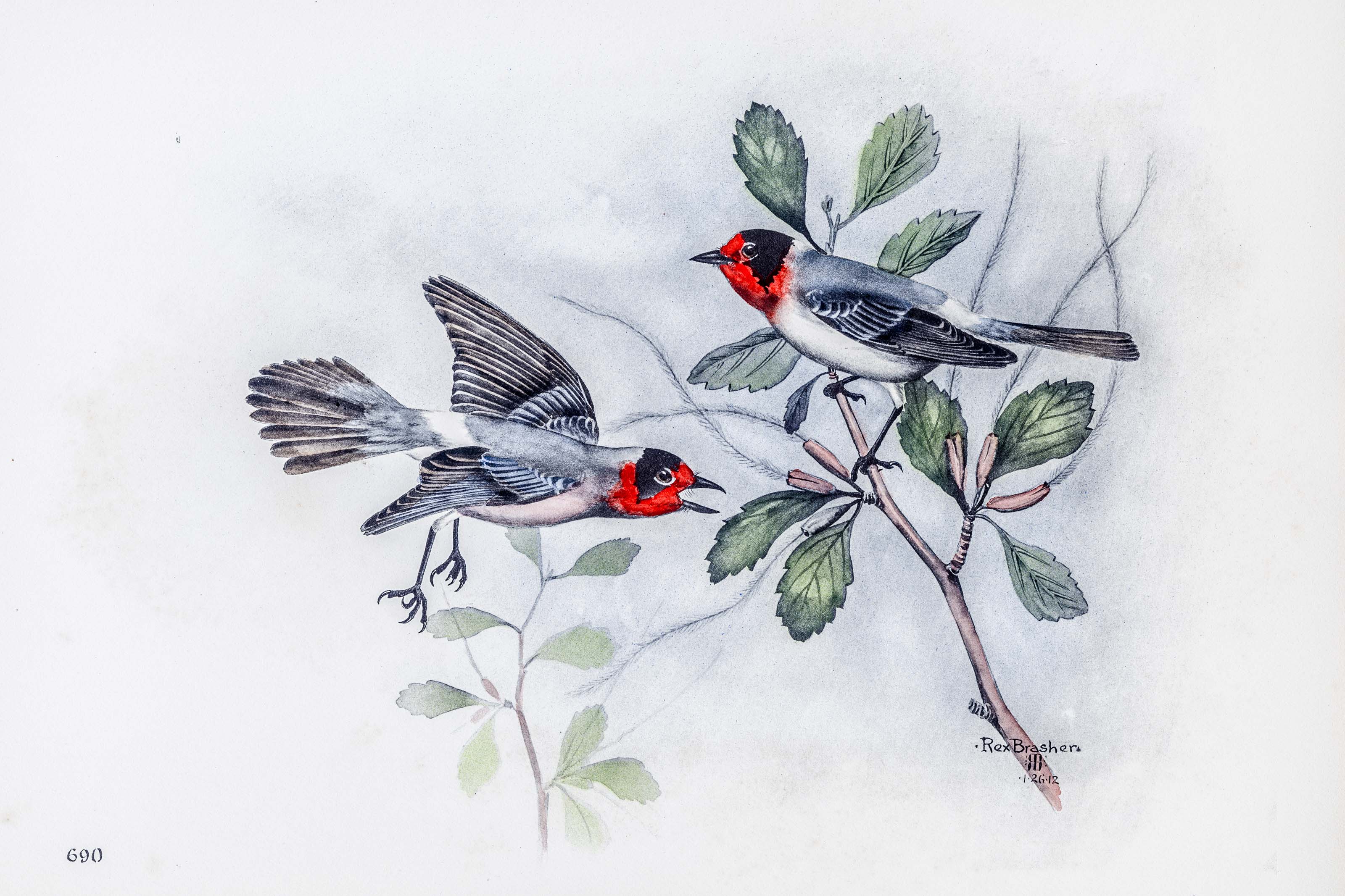 Henshaw, who added this bird to our avifauna in 1874, states that flocks of ten or fifteen were common around Camp Apache, Arizona, during the latter part of July. They frequented pines and spruces exclusively. Their habits were a strange mixture of Warbler and Redstart mannerisms, and sometimes recalled the less graceful motions of the familiar Titmice. Their favorite hunting places were extremities of evergreen limbs over which they passed quickly with a peculiar and constant sidewise jerk of the tails.