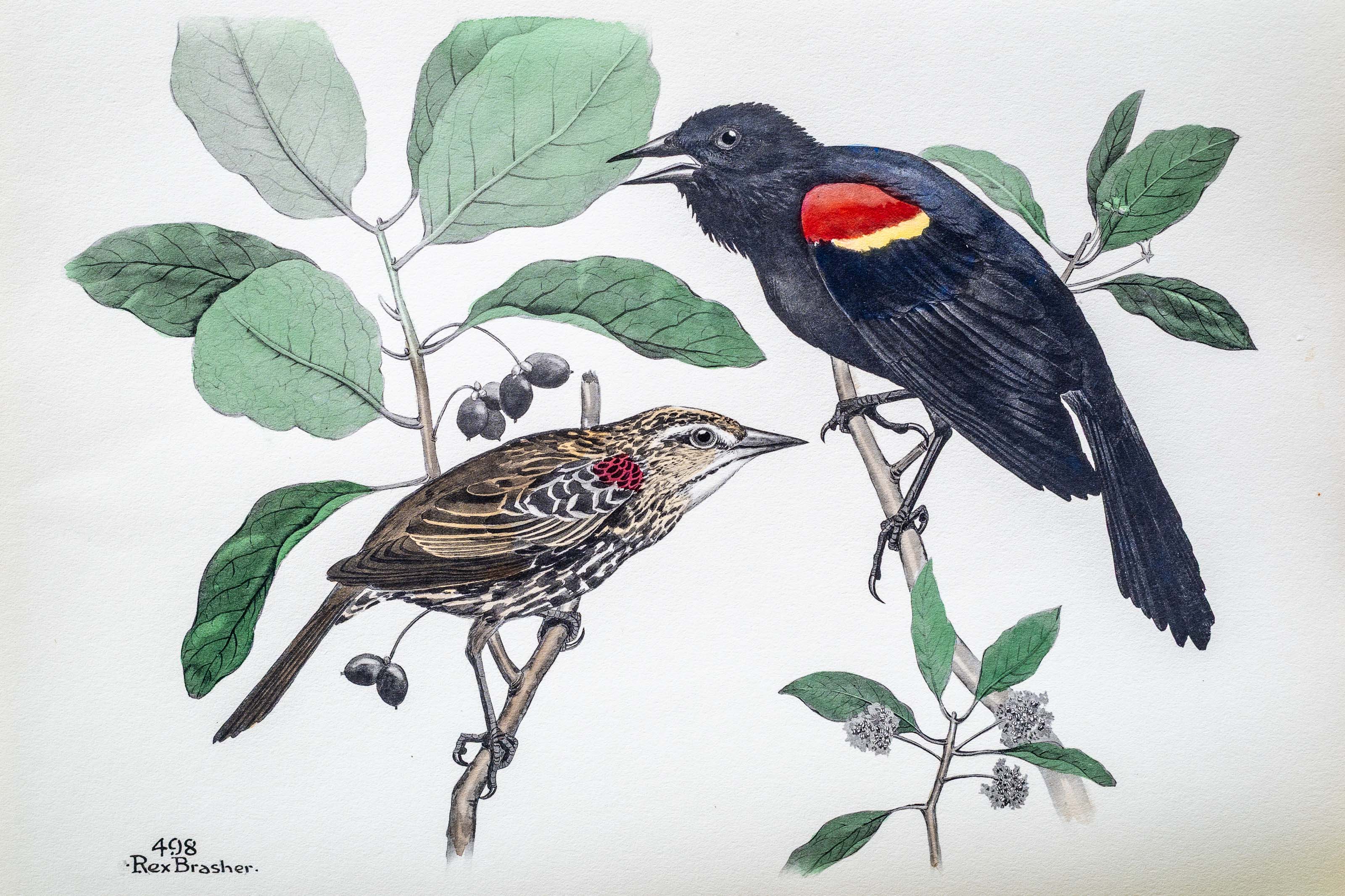 The habits of Redwings and their cousins are all about alike. They are remarkably gregarious at all times — nesting, feeding and migrating in companies. Few birds have the social instinct more developed and the groups live amicably. Some of our eastern birds separate from the main body, preferring salt or brackish marshes, and go back along inland streams where one or two pairs settle in a favorite locality. Not for them the tumult of a Redwing city — quiet is what they want. In early April the males' o-kay-lee from tip of the cottonwood is a most welcome call. I have always liked the notes and the flaunt of epauletted wings accompanying their utterance.