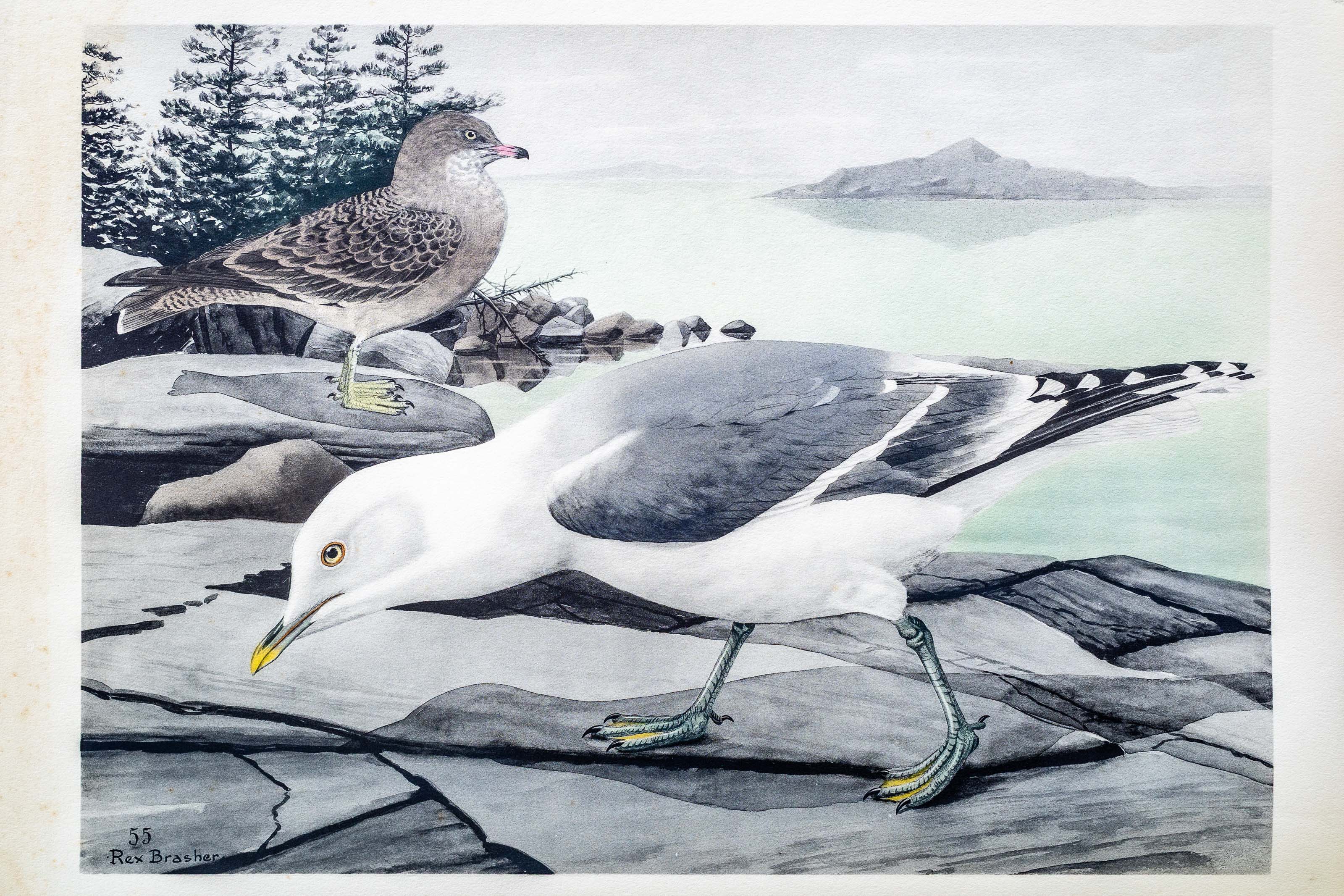 This American form of the European Mew Gull does not differ in habits from the larger Gulls. Grinnell found them nesting in low bushy evergreens and says they exhibit unusual curiosity. He compares the common note to a terrier's bark. Young join flocks of Glaucous Gulls instead of their own species. They seem aware of their small bill handicap and keep on the outskirts of a food battle staged by larger Gulls.