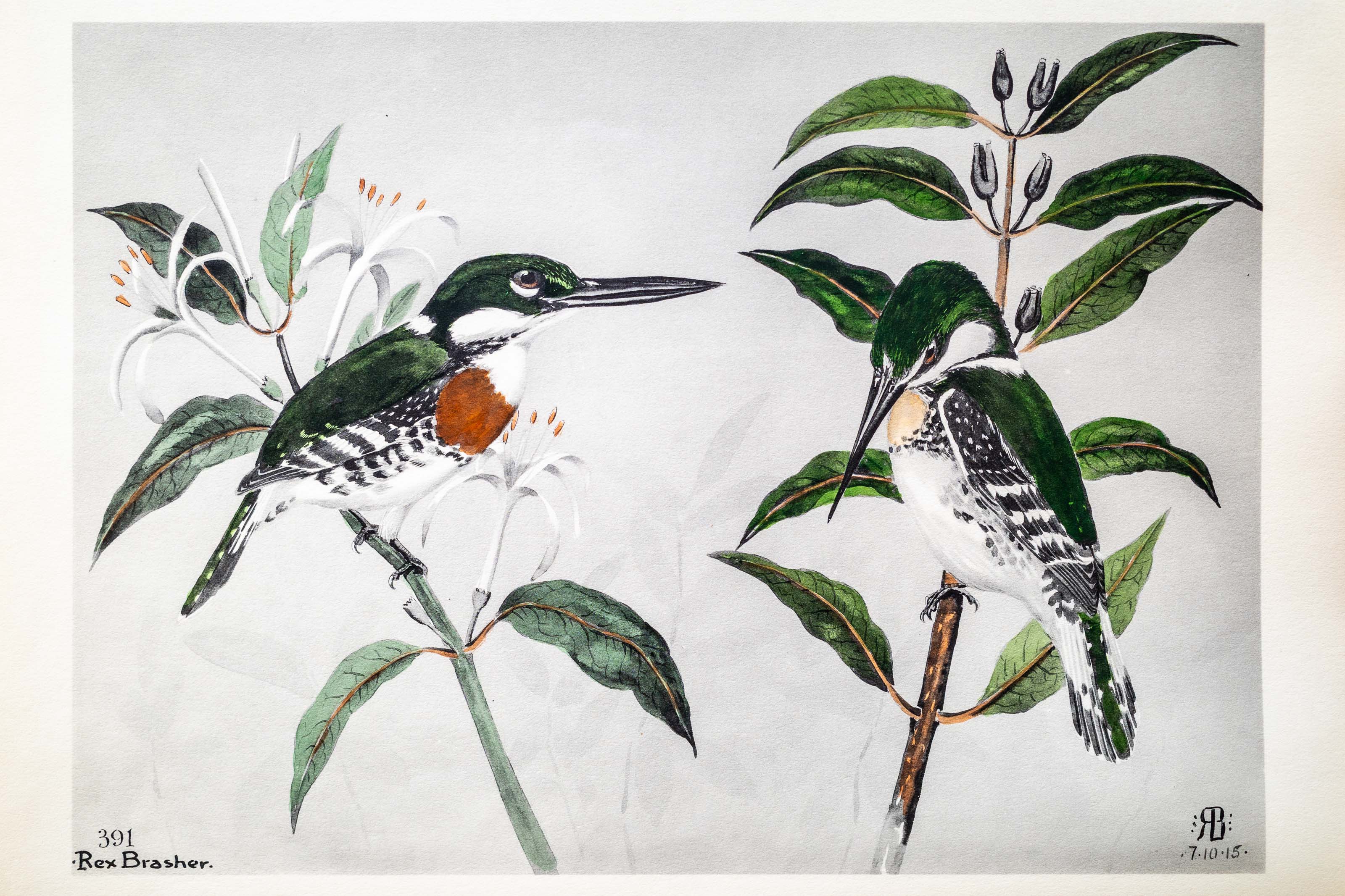 This miniature of our northern bird has about the same habits, even to a weak imitation of its raucous rattle. They are more belligerent in defending their fishing rights — an intruder is soon chased off the range.