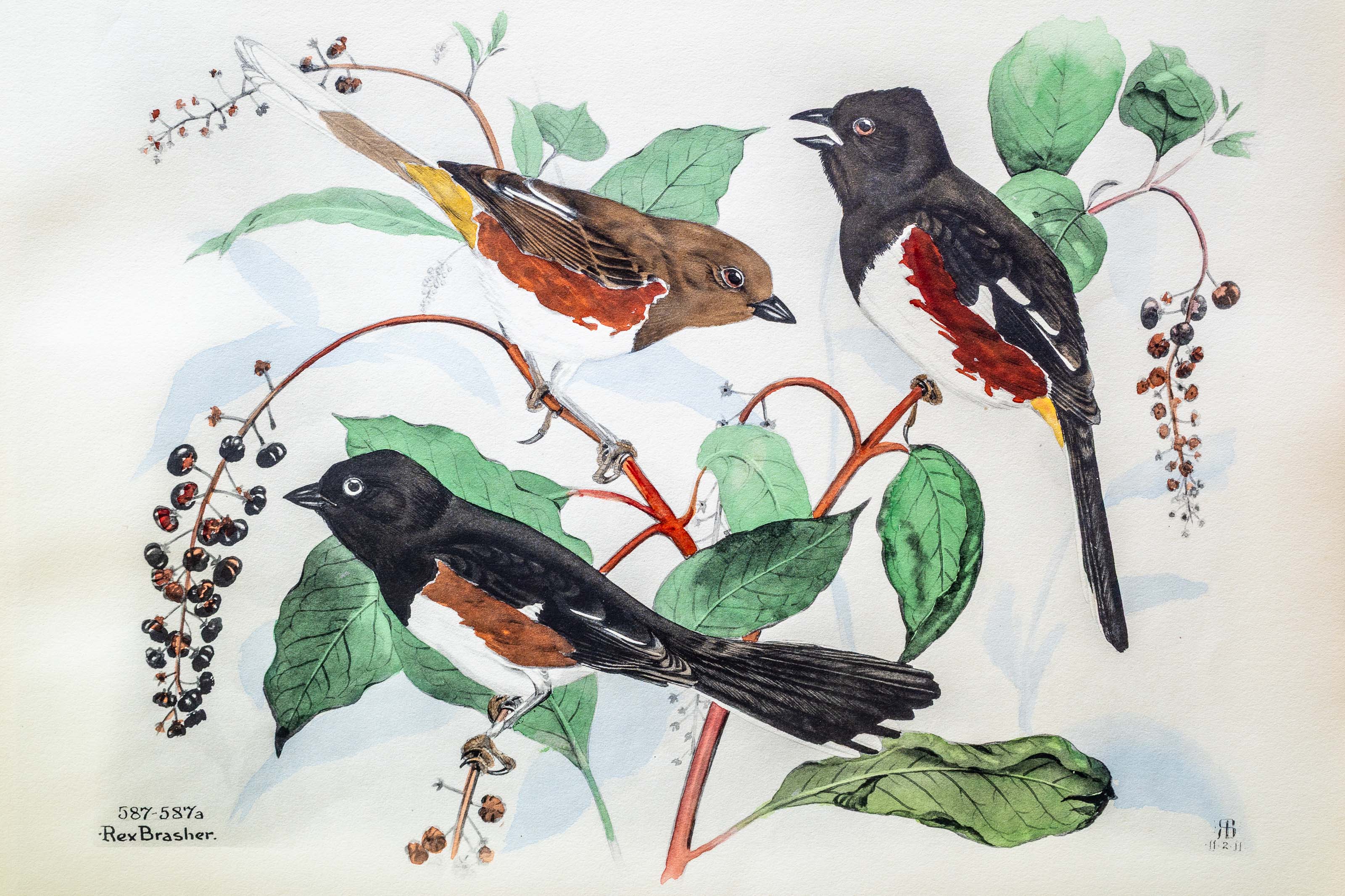 Except when singing, Towhees are found on the ground where they scratch among the leaves, using the feet alternately; wherein they differ from other members of the family. I have been lured frequently in the direction of such a leaf scattering, believing some animal was at work, only to find all the scurrying was caused by an energetic Pipilo!