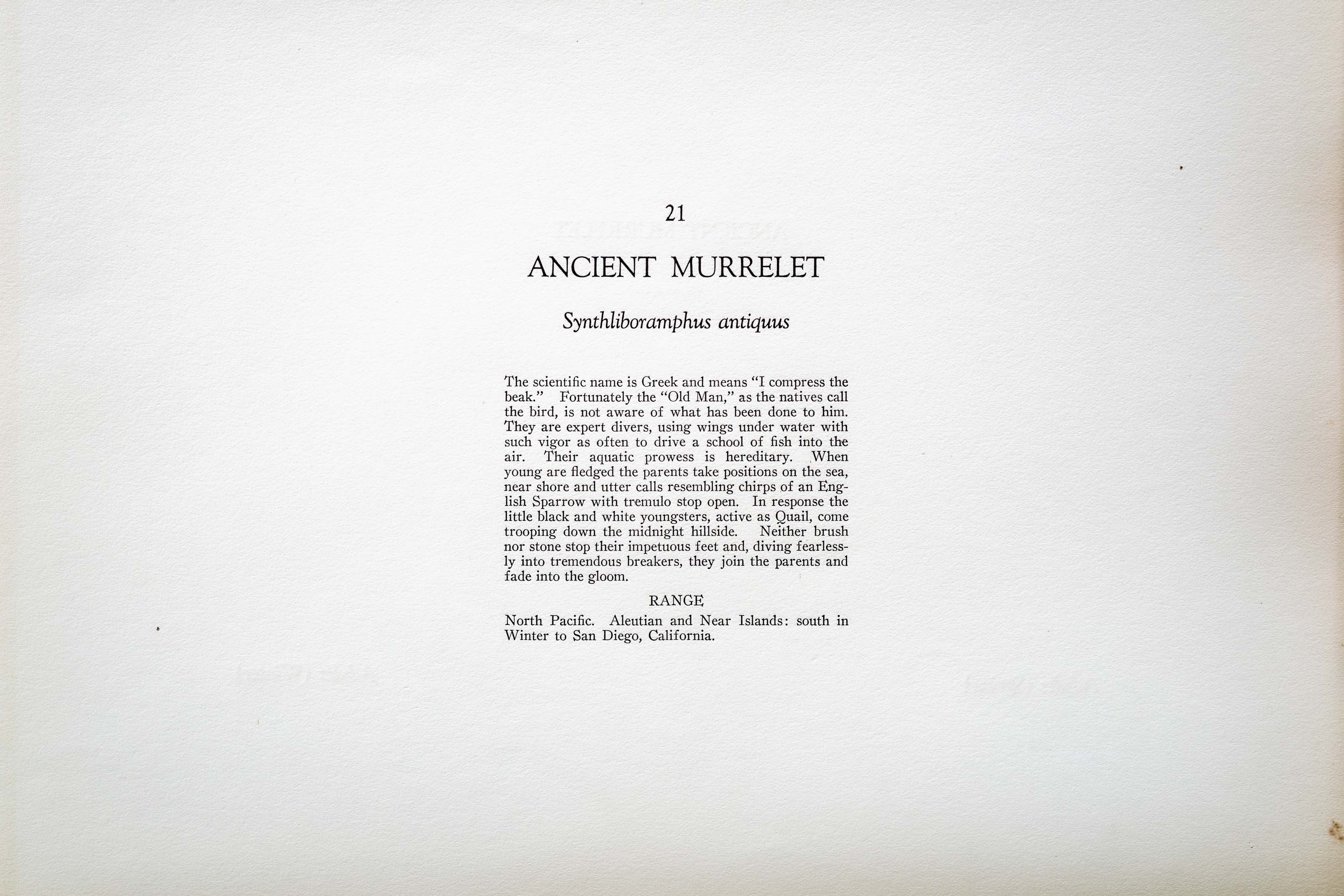 Fortunately the "Old Man," as the natives call the bird, is not aware of what has been done to him. They are expert divers, using wings under water with such vigor as often to drive a school of fish into the air. Their aquatic prowess is hereditary. When young are fledged the parents take positions on the sea, near shore and utter calls resembling chirps of an English Sparrow with tremulo stop open. In response the little black and white youngsters, active as Quail, come trooping down the midnight hillside. Neither brush nor stone stop their impetuous feet and, diving fearlessly into tremendous breakers, they join the parents and fade into the gloom.
