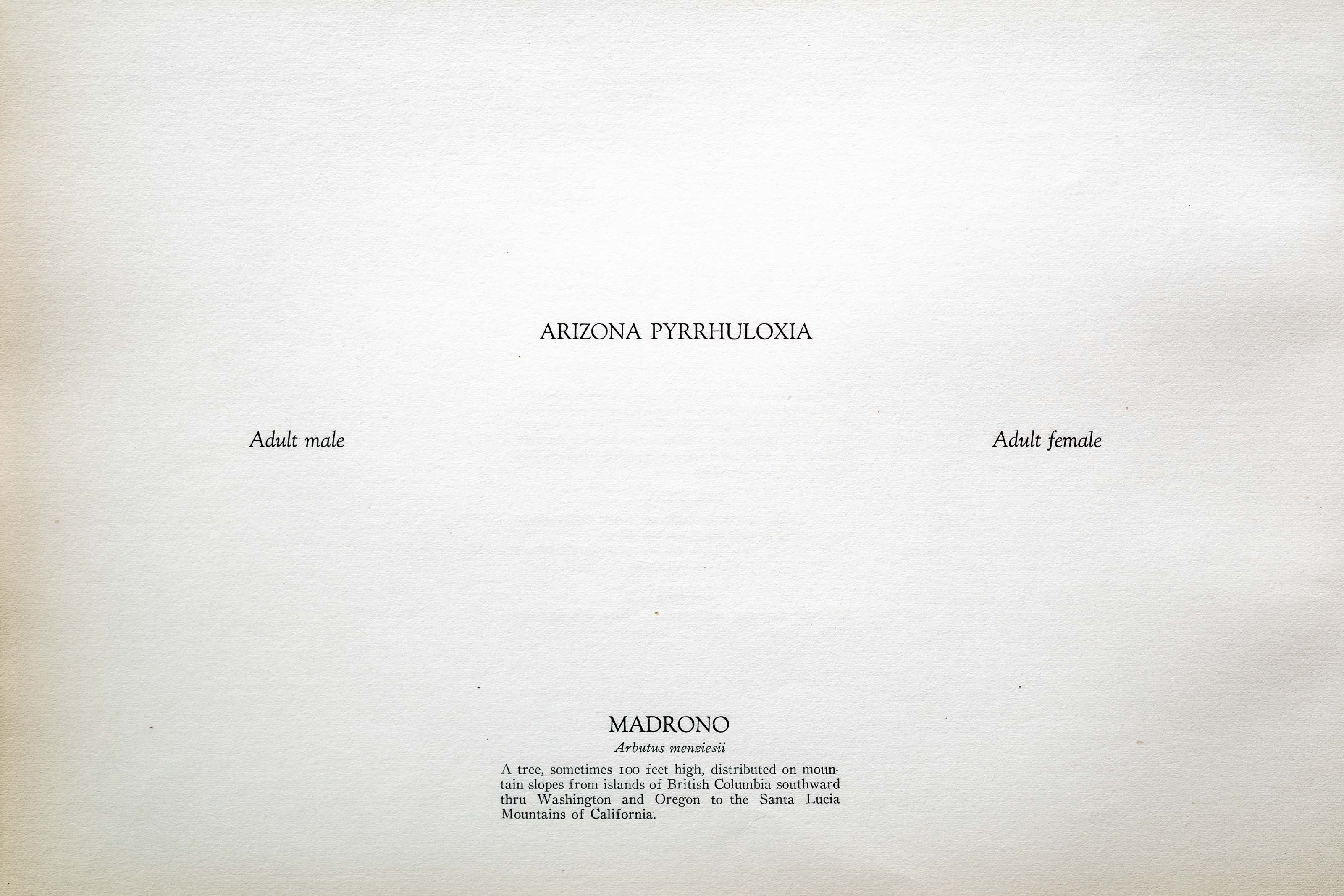 This singular bird with parrot bill, carmine and gray dress, graces the lower Rio Grande Valley where Merrill says its charming presence is a relief from the universal gray landscape of winter, while in Spring their liquid queet queet queet from a mesquite top is an invitation to take to the open.