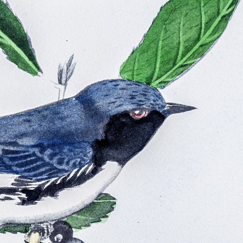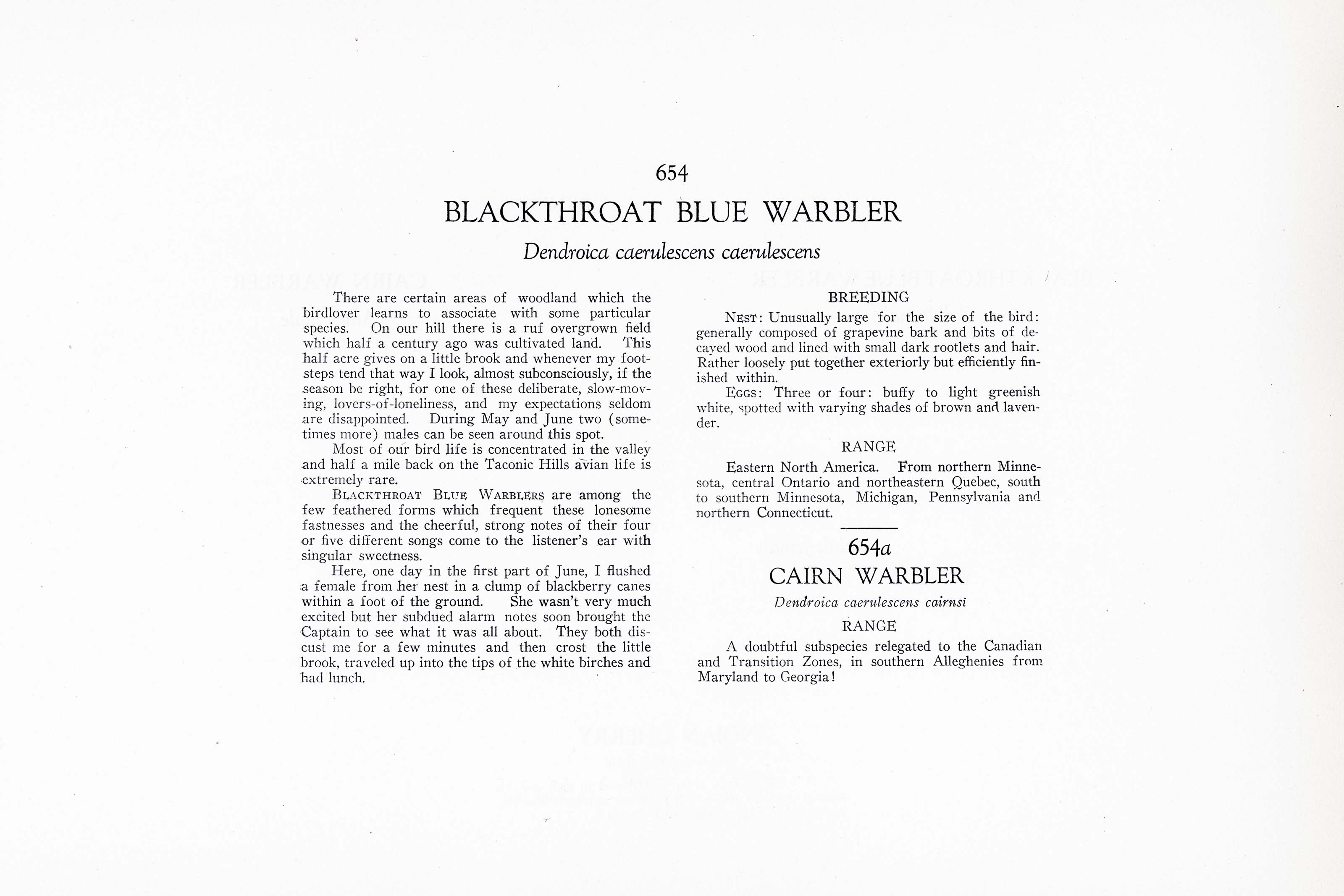 BLACKTHROAT BLUE WARBLERS are among the few feathered forms which frequent these lonesome fastnesses and the cheerful, strong notes of their four or five different songs come to the listener's ear with singular sweetness.