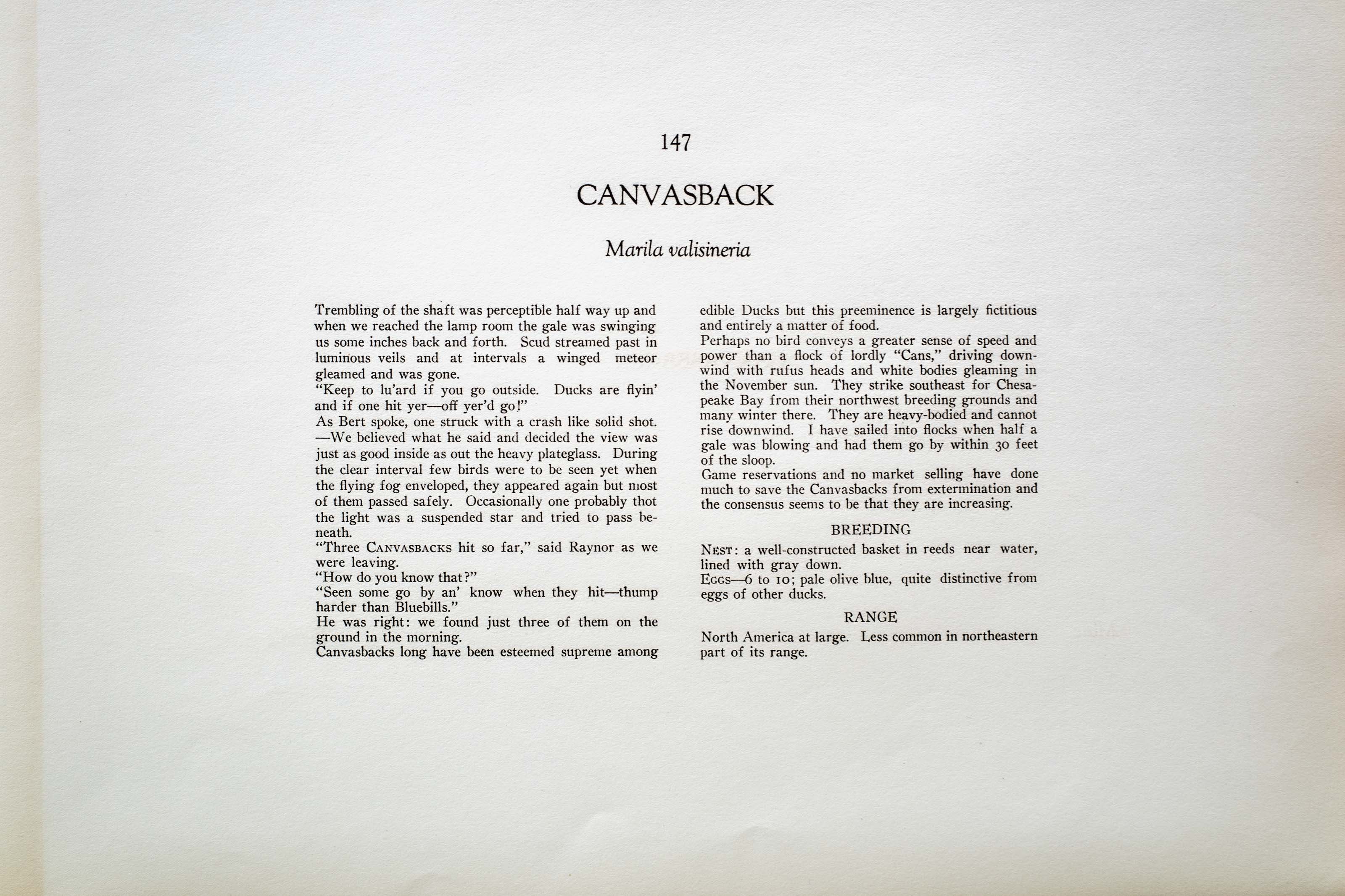 Canvasbacks long have been esteemed supreme among edible Ducks but this preeminence is largely fictitious and entirely a matter of food.