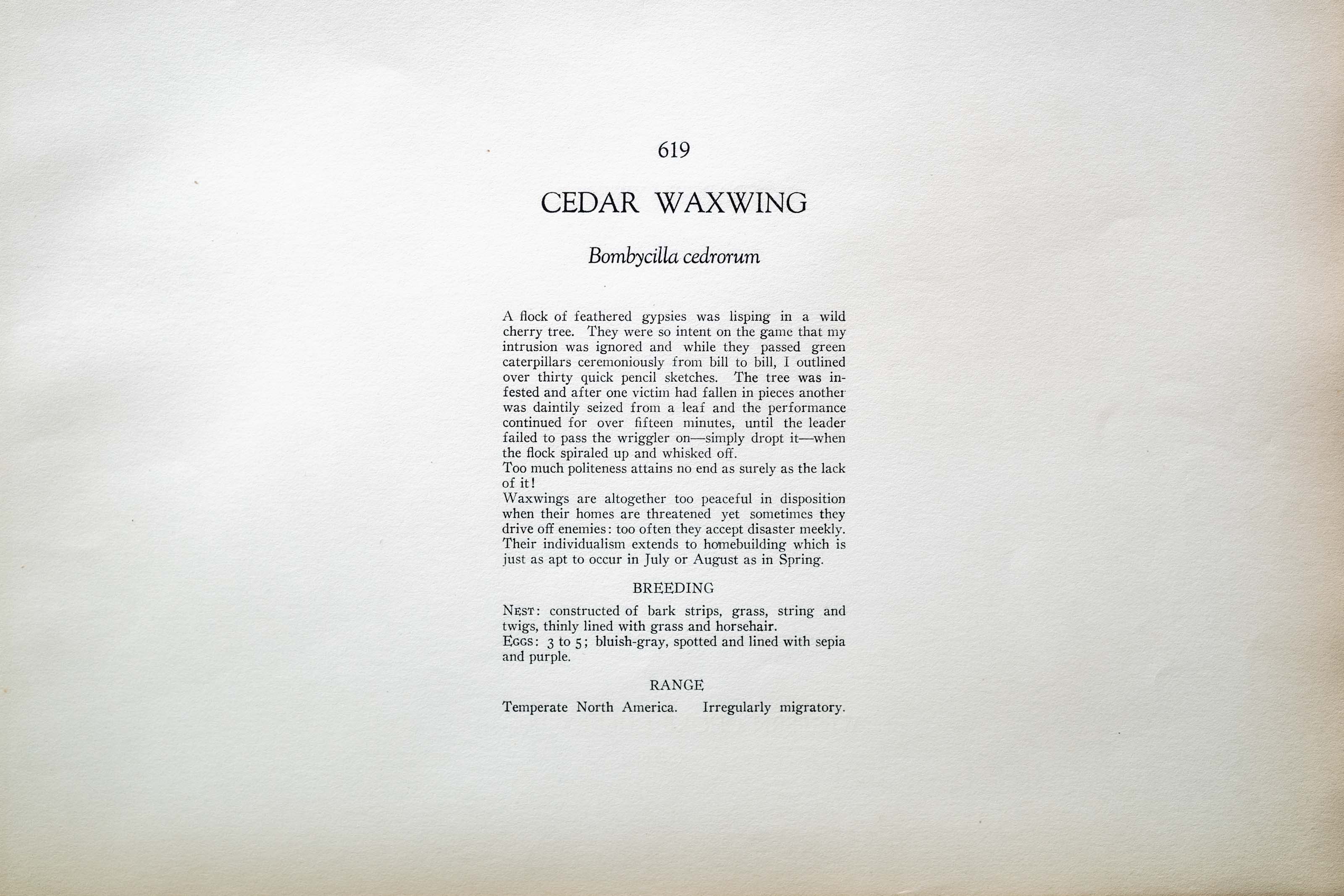A flock of feathered gypsies was lisping in a wild cherry tree. They were so intent on the game that my intrusion was ignored and while they passed green caterpillars ceremoniously from bill to bill, I outlined over thirty quick pencil sketches. The tree was infested and after one victim had fallen in pieces, another was daintily seized from a leaf and the performance continued for over fifteen minutes, until the leader failed to pass the wriggler on — simply dropt it — when the flock spiraled up and whisked off.