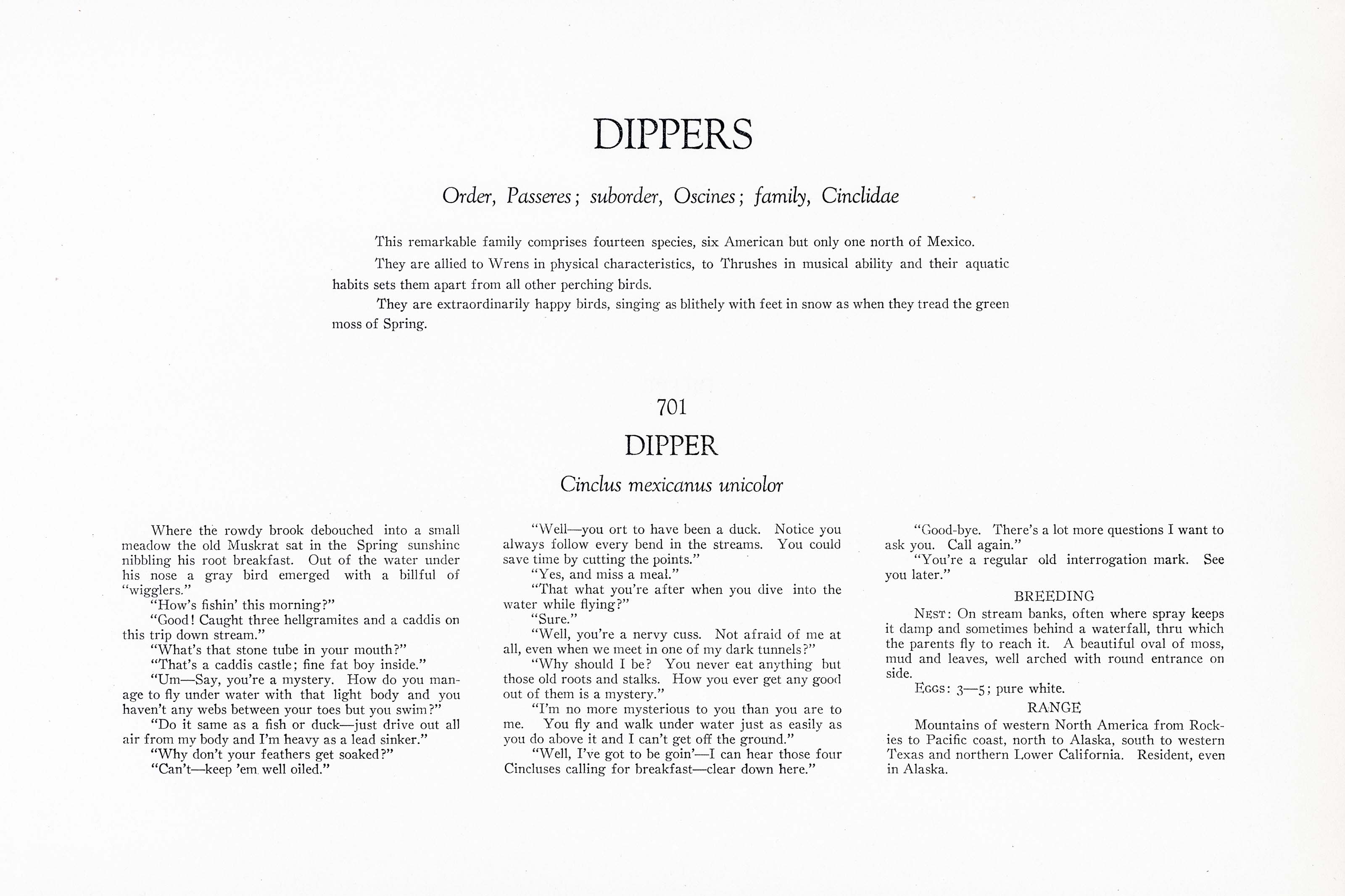 Where the rowdy brook debouched into a small meadow the old Muskrat sat in the Spring sunshine nibbling his root breakfast. Out of the water under his nose a gray bird emerged with a billful of "wigglers."