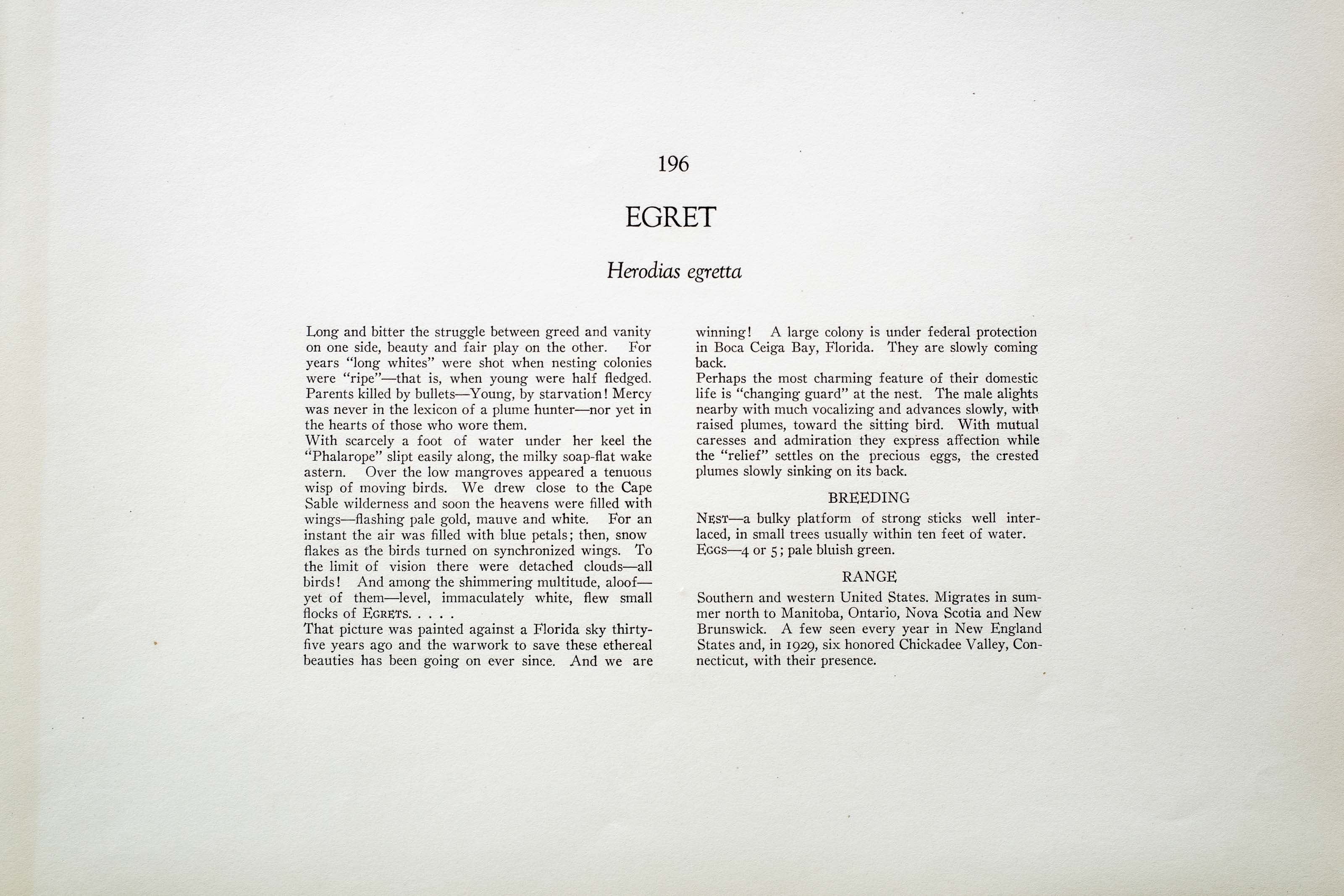 Long and bitter the struggle between greed and vanity on one side, beauty and fair play on the other. For years "long whites" were shot when nesting colonies were "ripe" — that is, when young were half fledged. Parents killed by bullets — Young, by starvation! Mercy was never in the lexicon of a plume hunter — nor yet in the hearts of those who wore them.