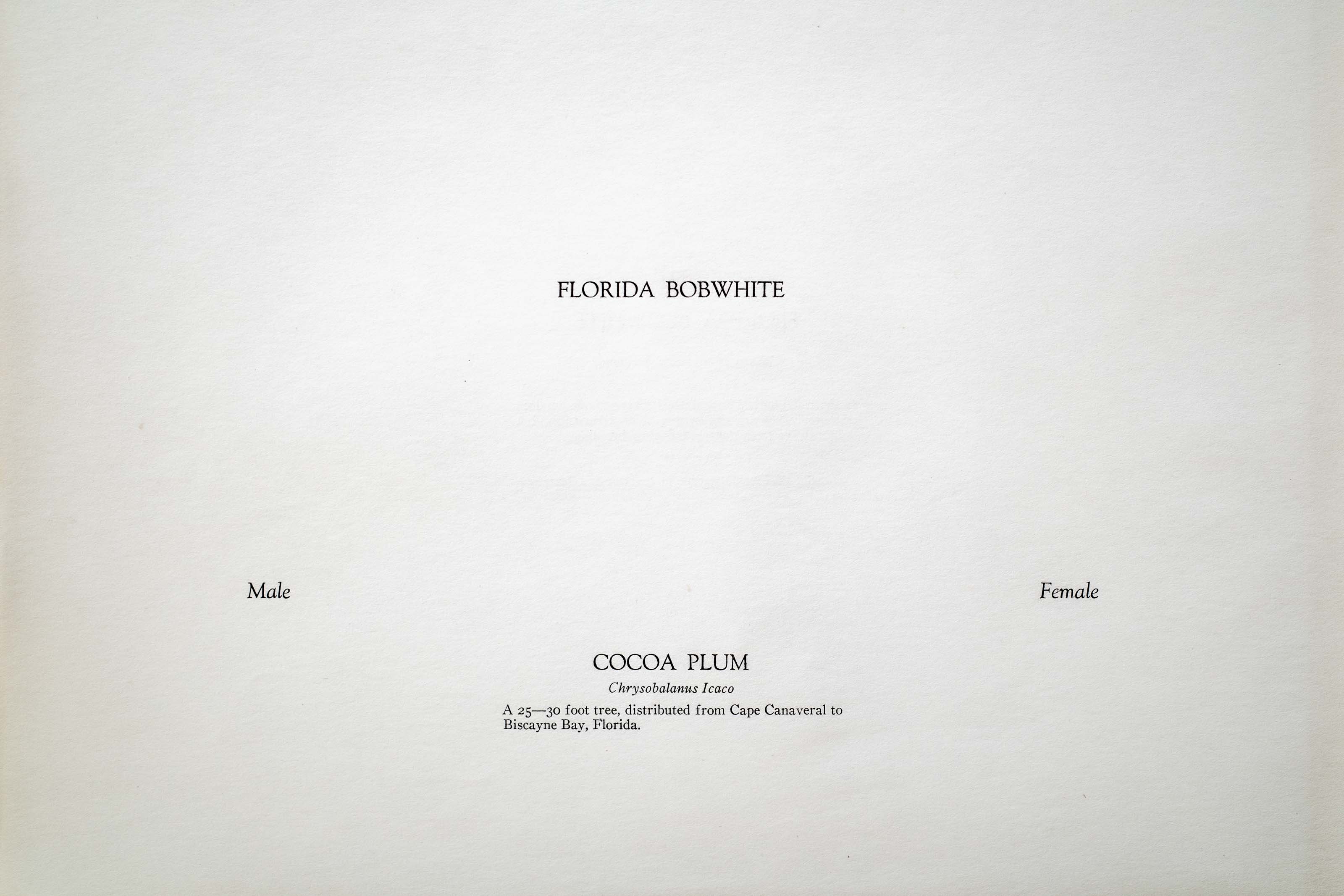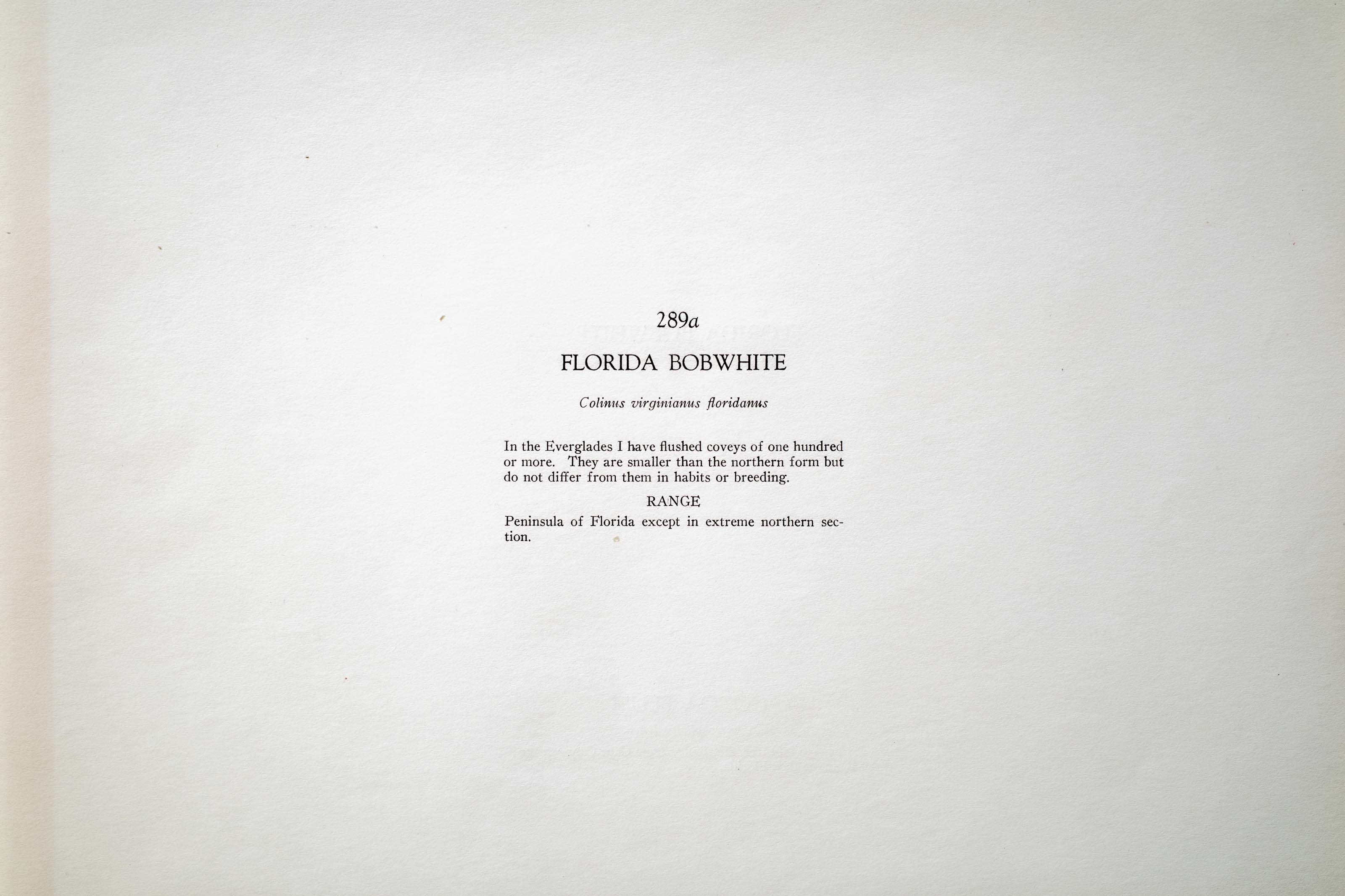 In the Everglades I have flushed coveys of one hundred or more. They are smaller than the northern form but do not differ from them in habits or breeding.