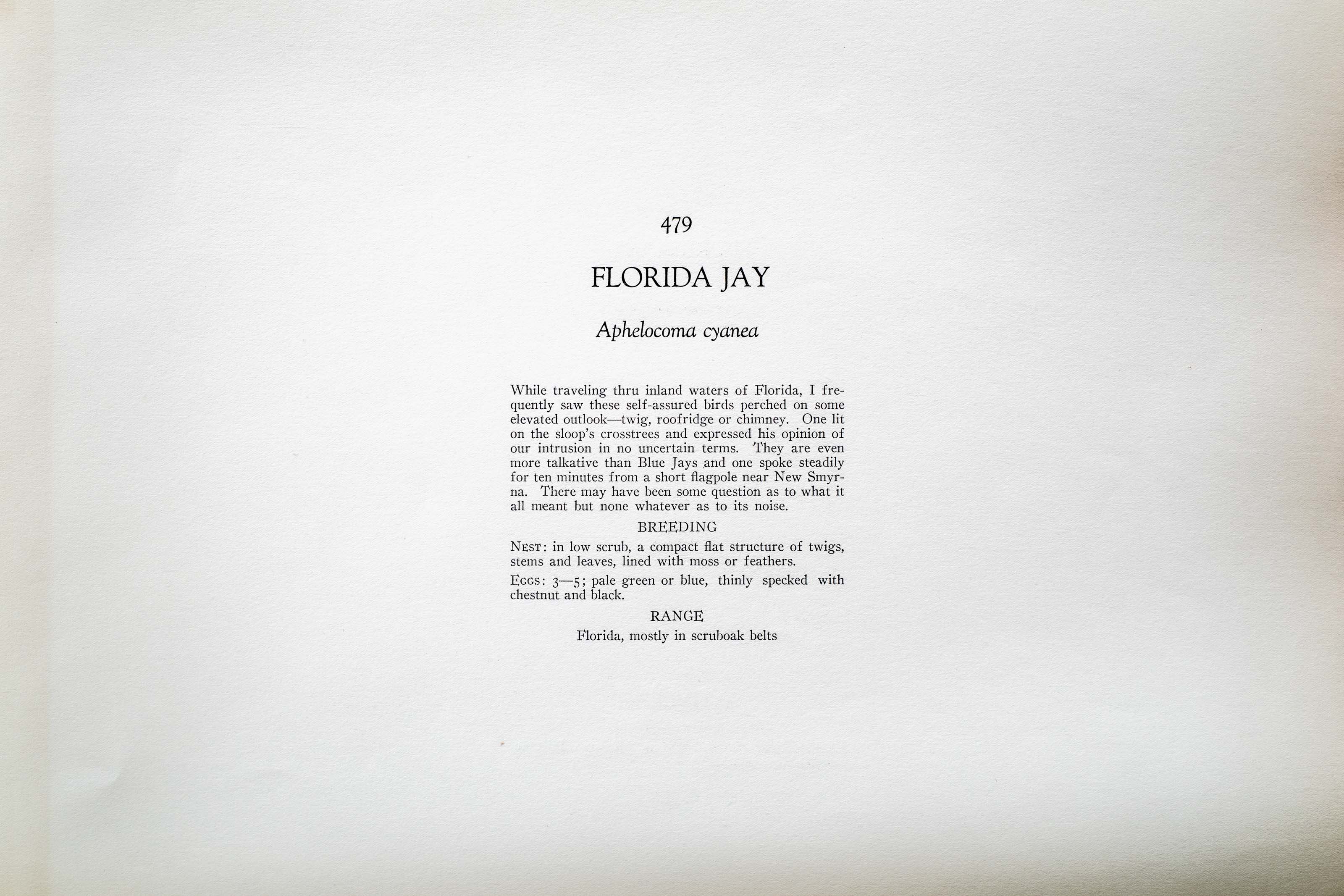 While traveling thru inland waters of Florida, I frequently saw these self-assured birds perched on some elevated outlook — twig, roofridge or chimney. One lit on the sloop's crosstrees and expressed his opinion of our intrusion in no uncertain terms. They are even more talkative than Blue Jays and one spoke steadily for ten minutes from a short flagpole near New Smyrna. There may have been some question as to what it all meant but none whatever as to its noise.