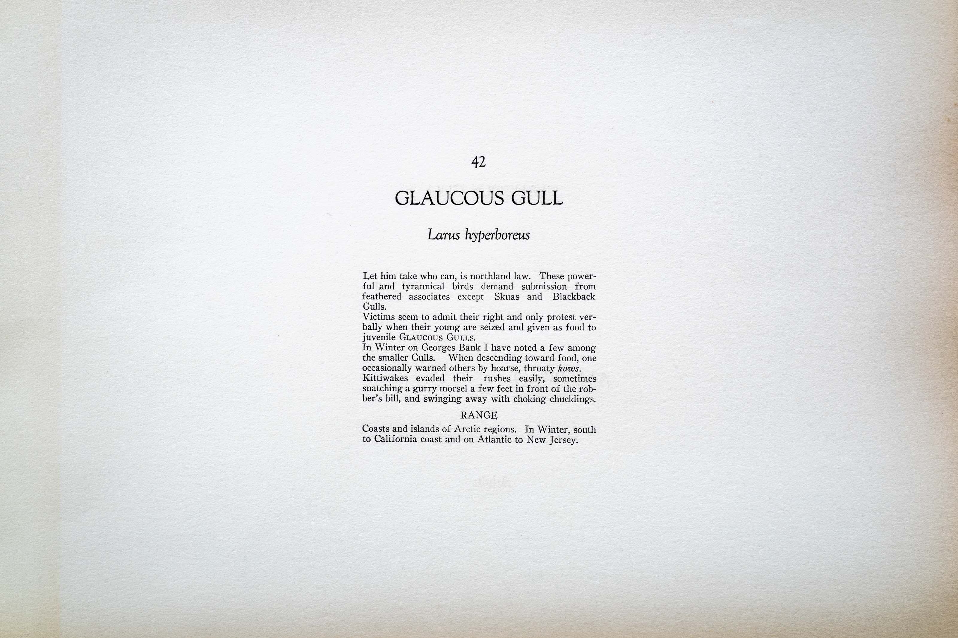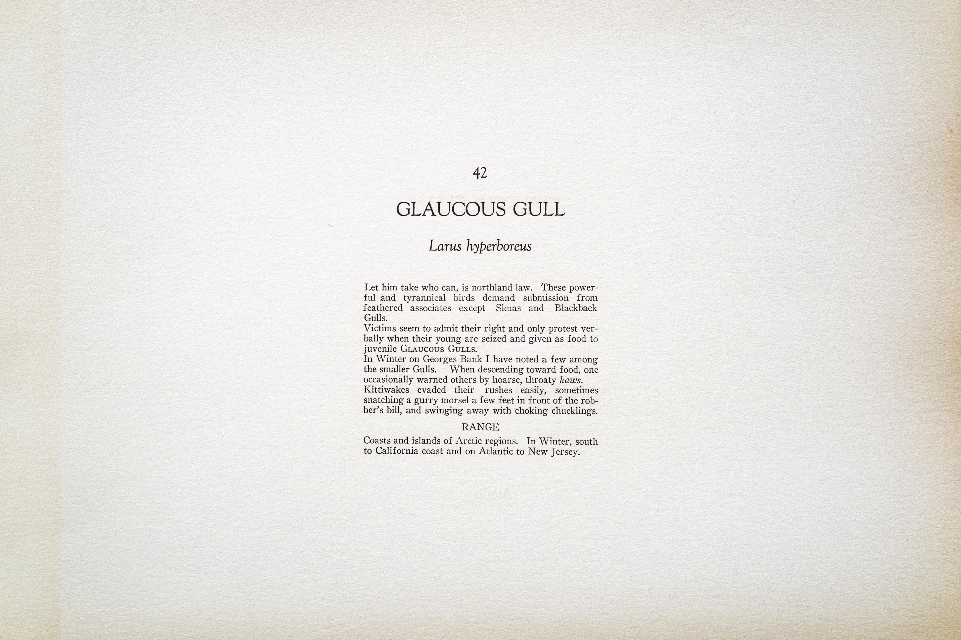 In Winter on Georges Bank I have noted a few among the smaller Gulls. When descending toward food, one occasionally warned others by hoarse, throaty kaws.