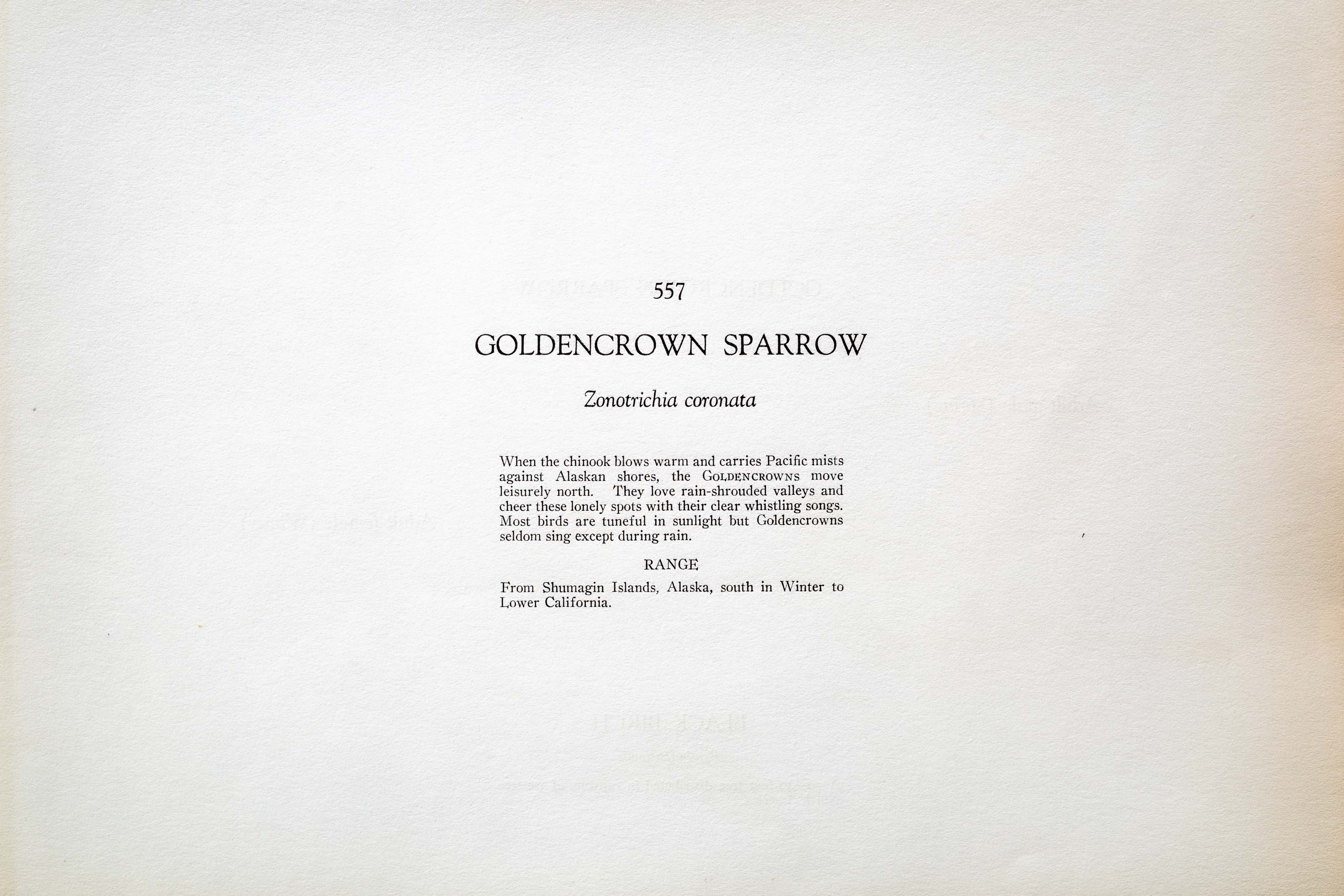 When the chinook blows warm and carries Pacific mists against Alaskan shores, the GOLDENCROWNS move leisurely north. They love rain-shrouded valleys and cheer these lonely spots with their clear whistling songs.
