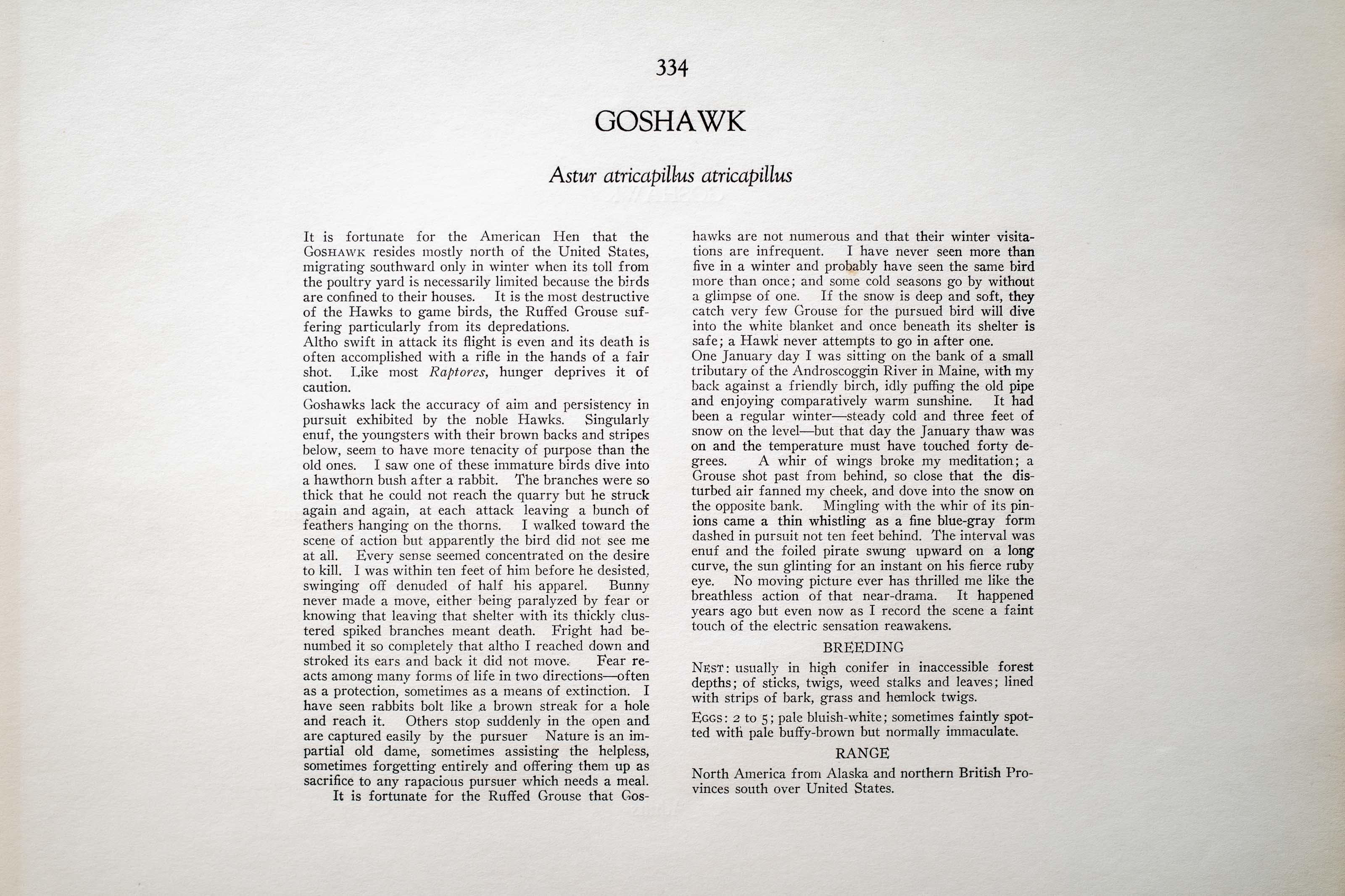 It is fortunate for the American Hen that the GOSHAWK resides mostly north of the United States, migrating southward only in winter when its toll from the poultry yard is necessarily limited because the birds are confined to their houses. It is the most destructive of the Hawks to game birds, the Ruffed Grouse suffering particularly from its depredations.