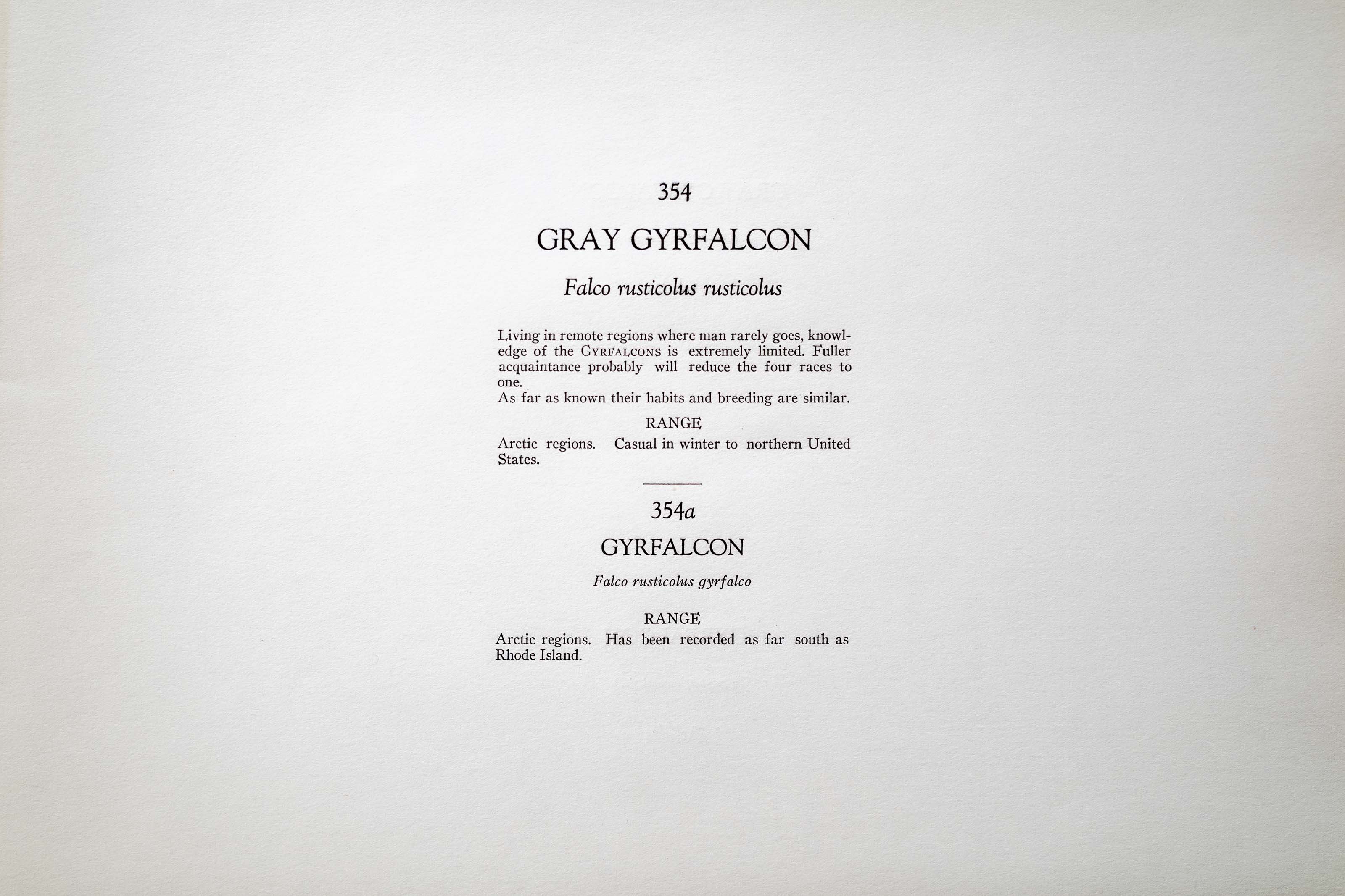 Living in remote regions where man rarely goes, knowledge of the GYRFALCONS is extremely limited. Fuller acquaintance probably will reduce the four races to one.