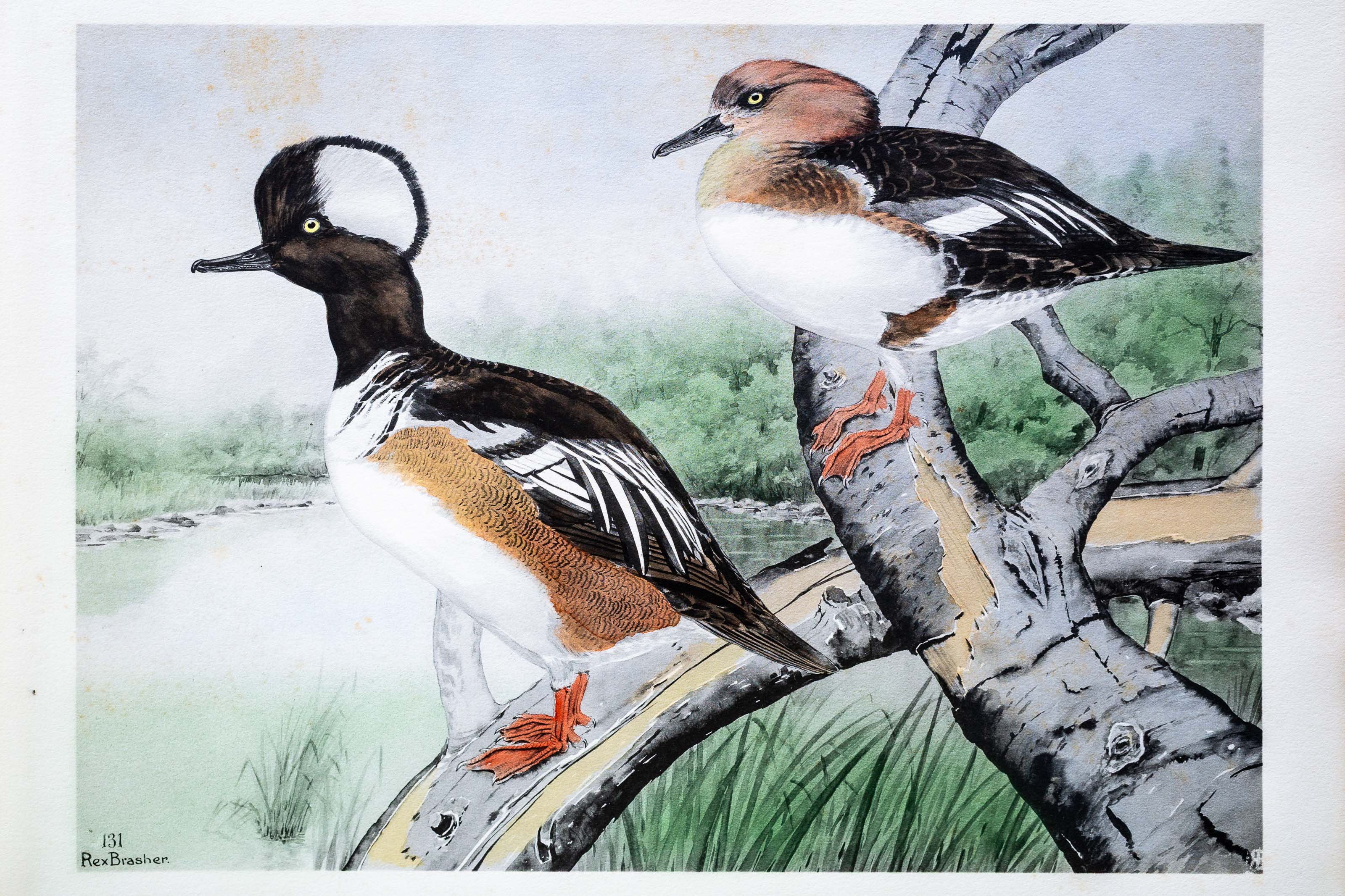 Although formerly quite numerous these birds now are rare owing to their unsuspicious habits. They are far less wary than the two other members of the genus, dropping in for a social visit among decoys — and being dropt by the gunner! They are as adept as Wood Ducks in threading tree lanes and equally as swift awing, preferring quiet ponds or streams, seldom seeking salt water except during migration. They are about the size of Wood Ducks and apt to be mistaken in flight for their spectacular relative.