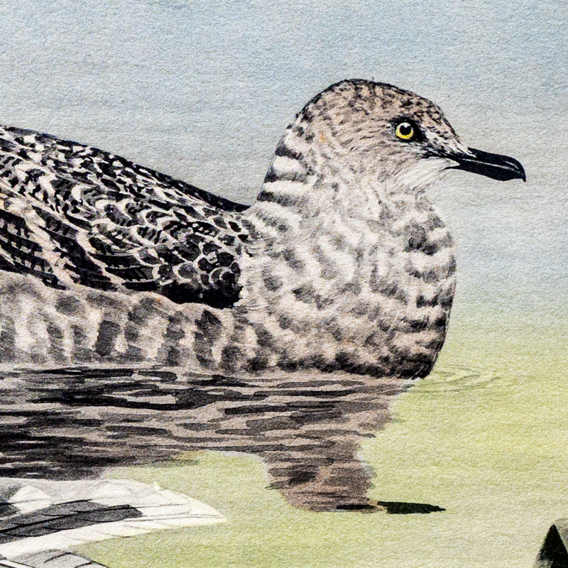 Ludwig Kumlien discovered this rare Gull on Cumberland Sound in 1878. He found them mingling with other species but were shy and difficult to shoot. Young birds are noticeably darker than other juveniles of the genus.