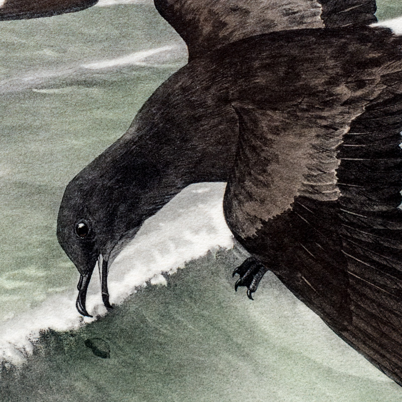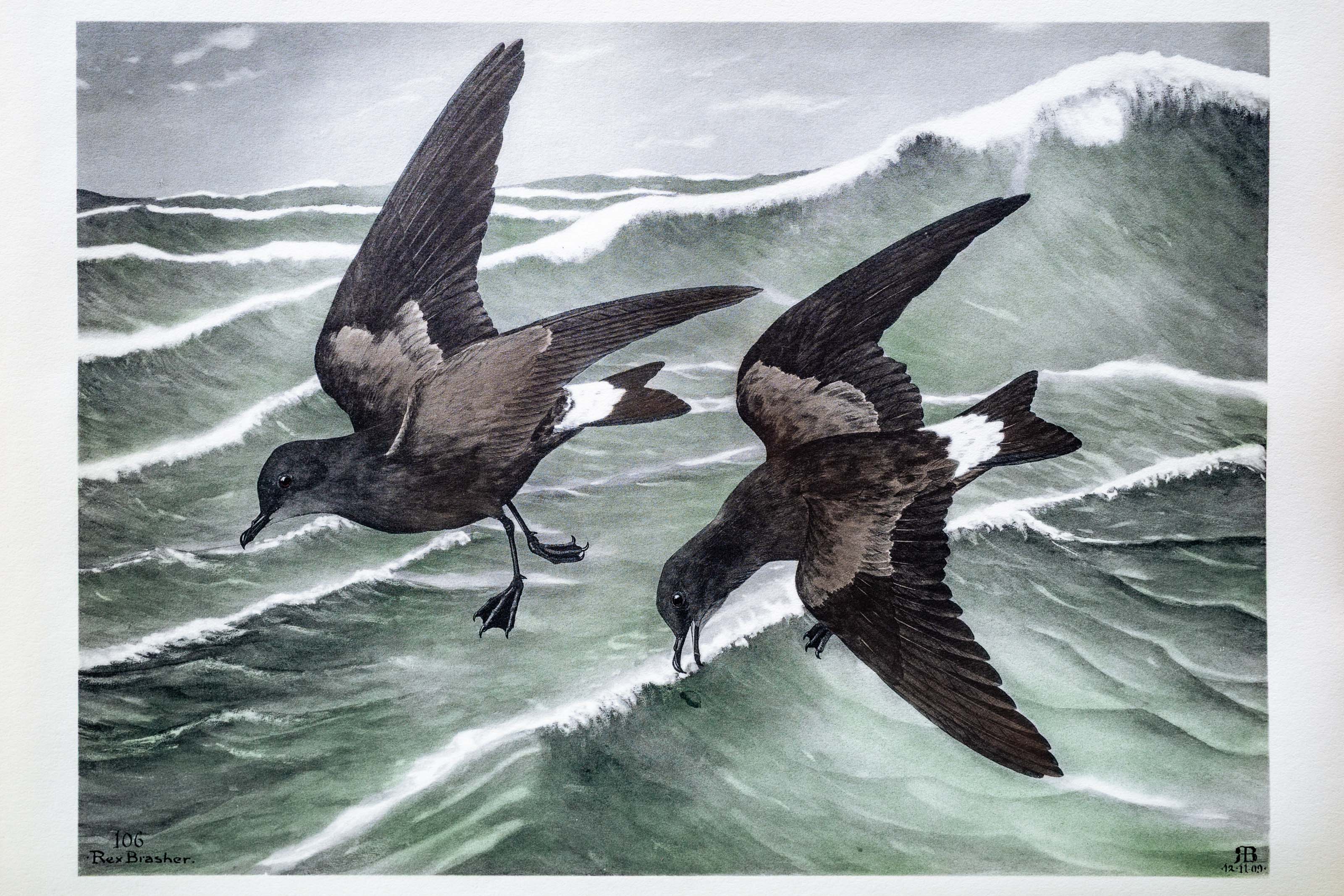 Altho not a bird is in sight, a few minutes after we start "chumming" the dark forms come wavering up the slick, eagerly seizing bits of "bunker." Soon there are a dozen, then twenty, and by the time the bluefish have hit the hooks there may be a hundred PETRELS tending the dinner table.