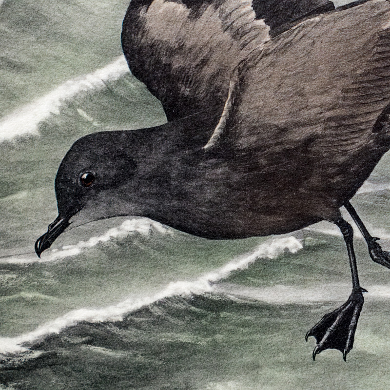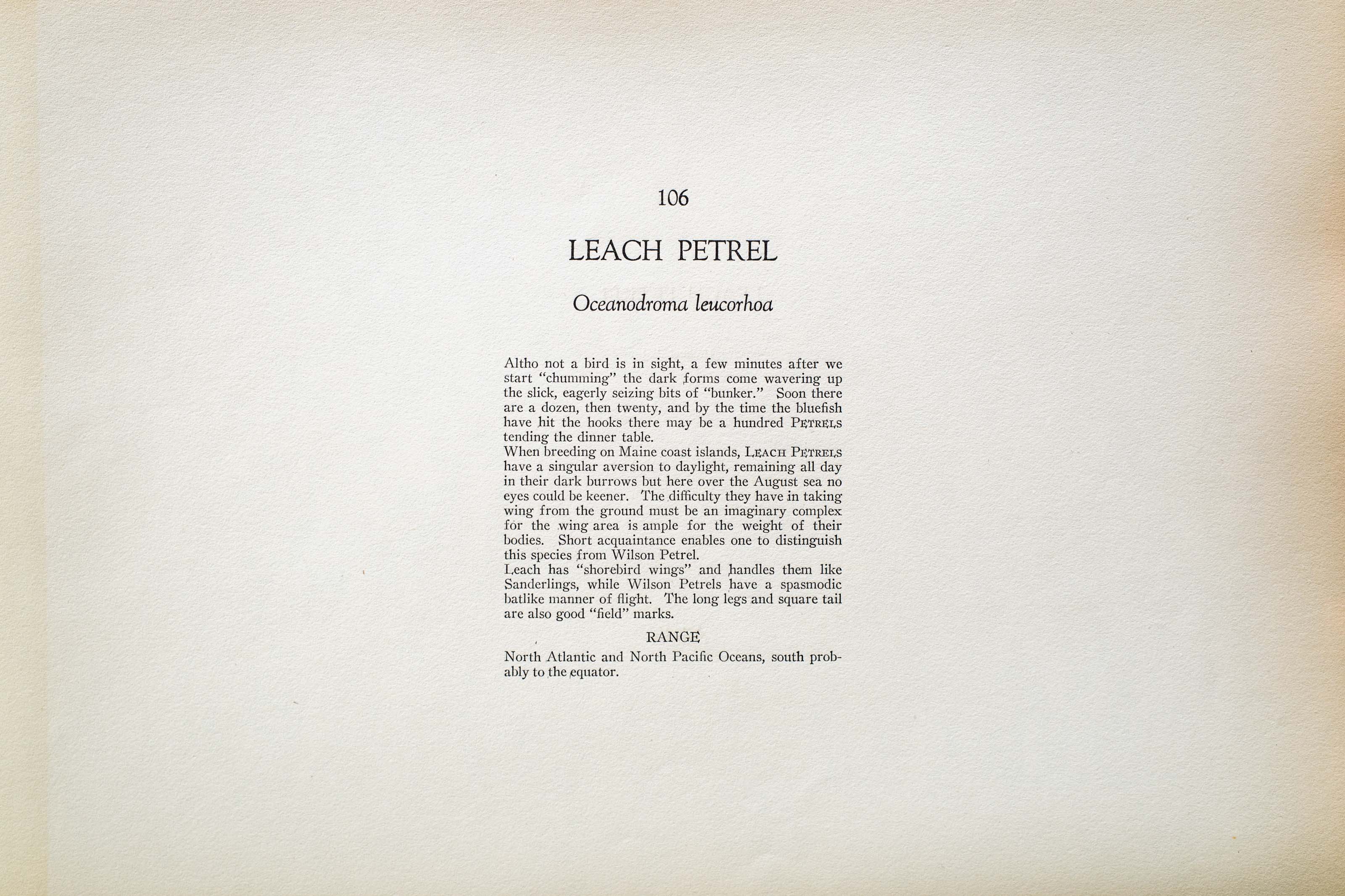 When breeding on Maine coast islands, LEACH PETRELS have a singular aversion to daylight, remaining all day in their dark burrows but here over the August sea no eyes could be keener. The difficulty they have in taking wing from the ground must be an imaginary complex for the wing area is ample for the weight of their bodies. Short acquaintance enables one to distinguish this species from Wilson Petrel.