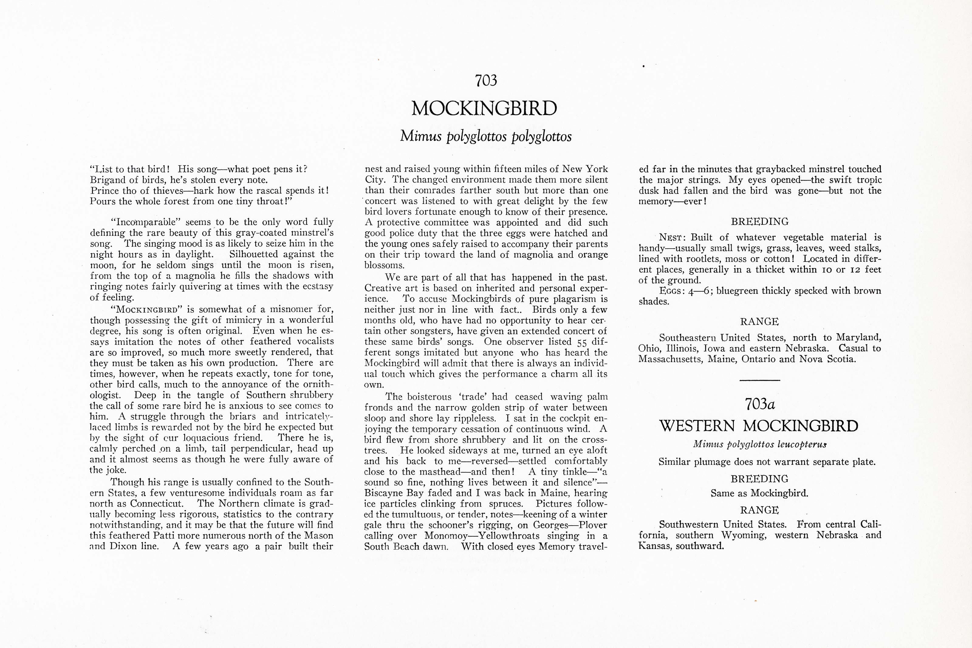 "Incomparable" seems to be the only word fully defining the rare beauty of this gray-coated minstrel's song. The singing mood is as likely to seize him in the night hours as in daylight. Silhouetted against the moon, for he seldom sings until the moon is risen, from the top of a magnolia he fills the shadows with ringing notes fairly quivering at times with the ecstasy of feeling.