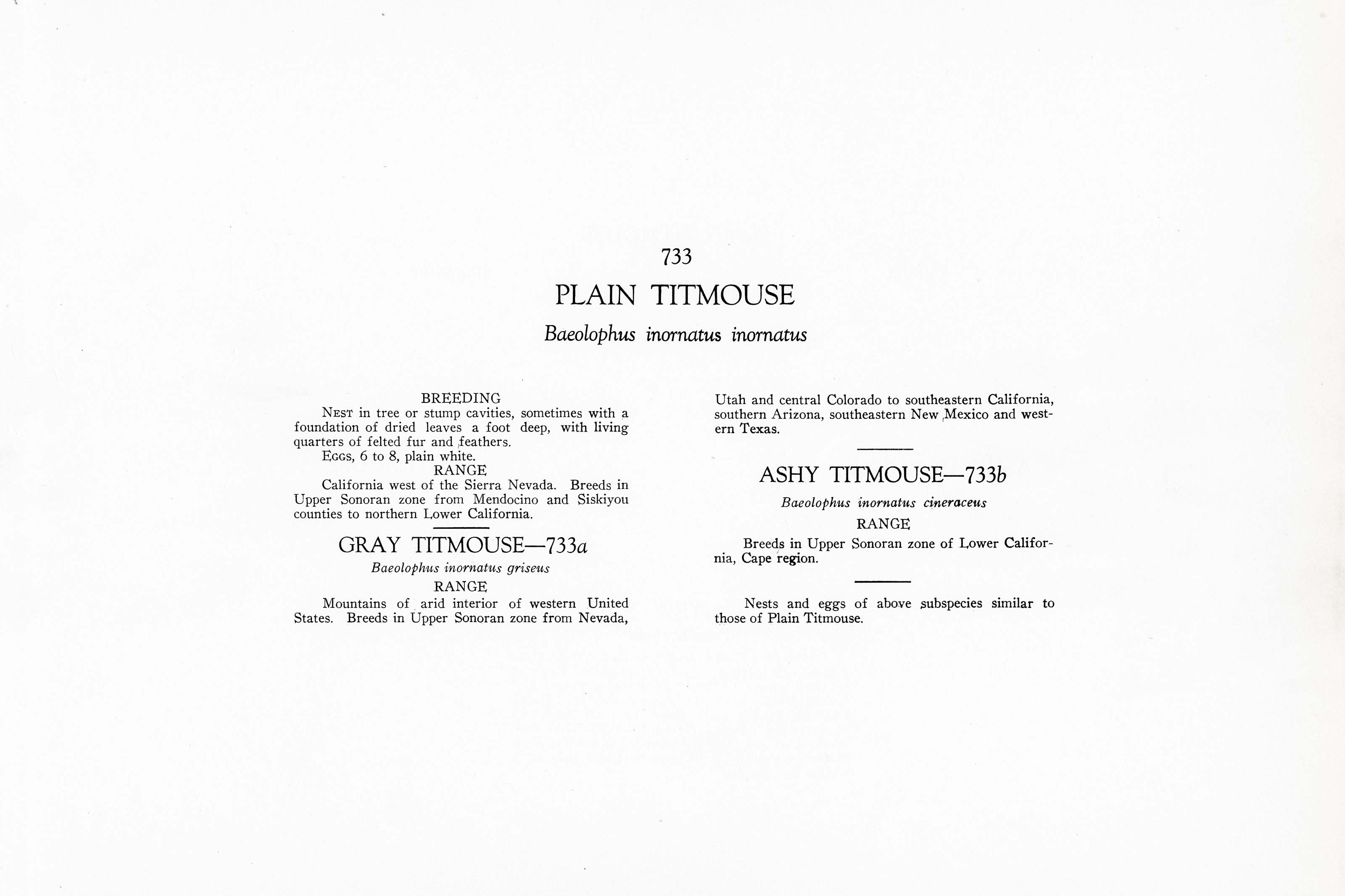 Nests and eggs of above subspecies similar to those of Plain Titmouse.