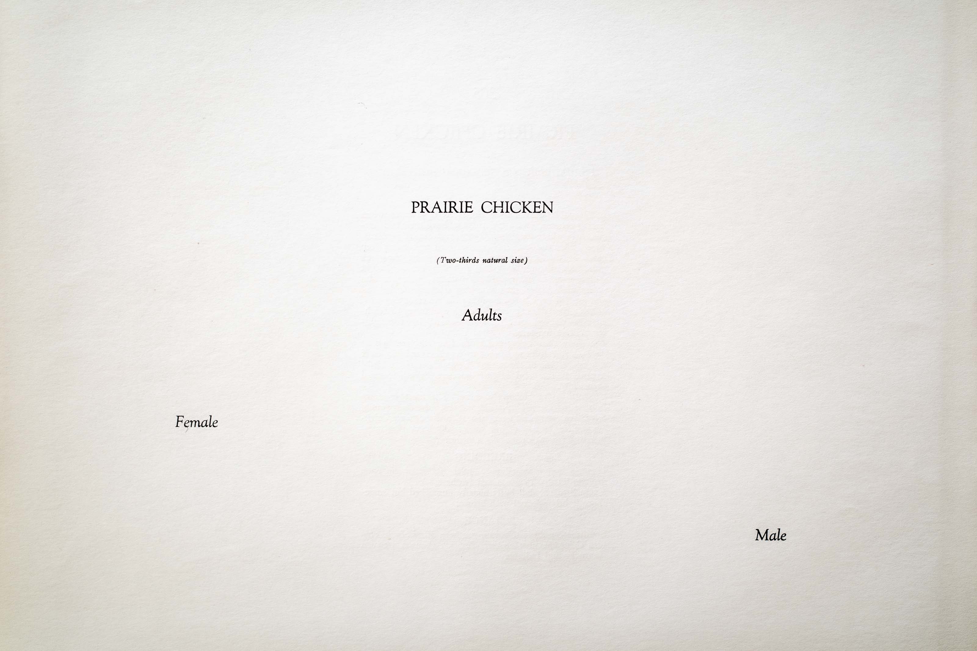 In favorable locations on the western prairies when Spring returns, PRAIRIE CHICKENS have their little circus rings where they stage a most remarkable performance. Thru the quiet early morning air resounds a deep resonant boom-a-b-o-o-m which rolls over the new green grass like a distant blast. It is a challenge to any knight within sound to enter the lists with the challenger who struts with dilated sacs, drooping wings, extended tail and erected neck tufts, awaiting his adversary.