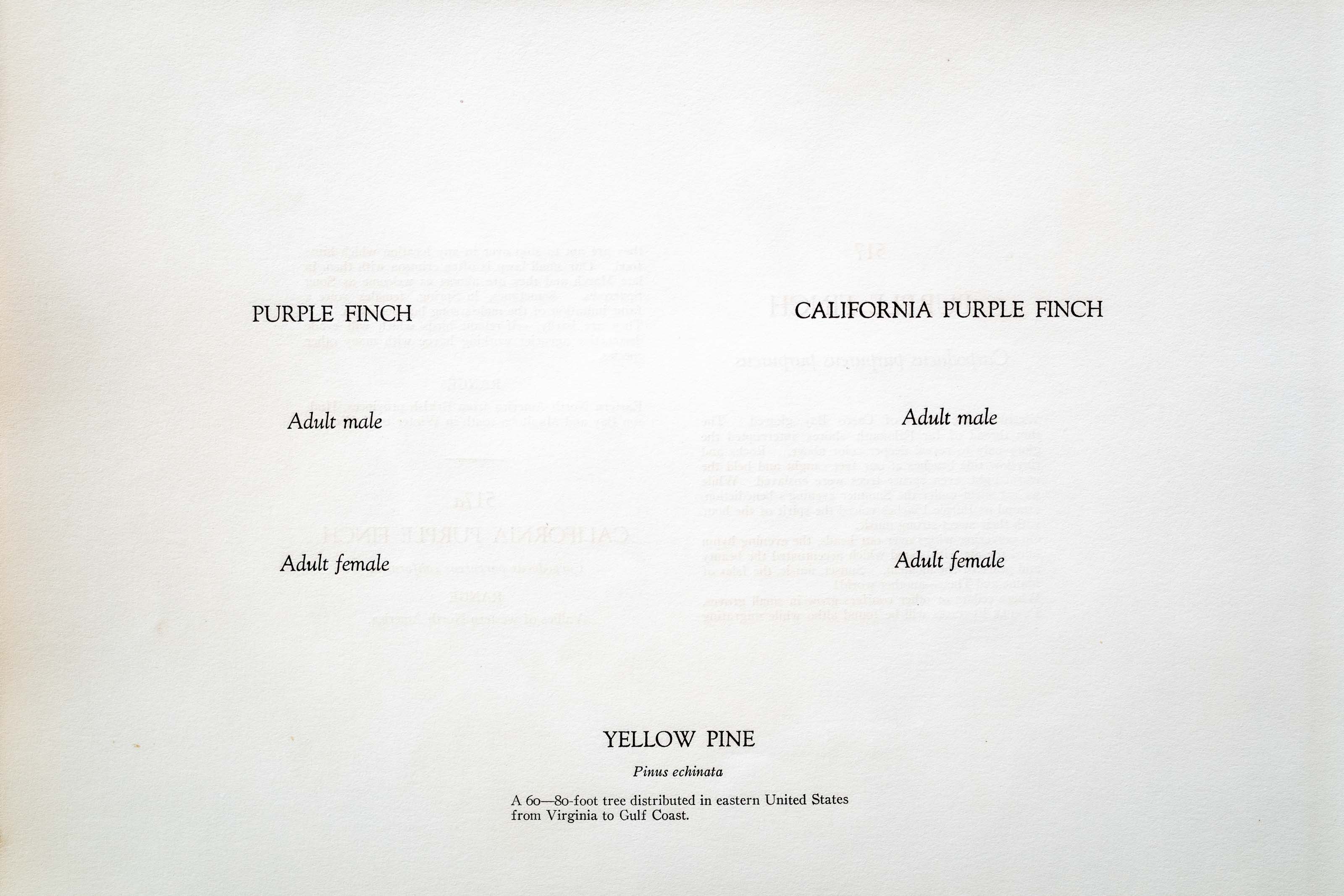 Where cedars or other conifers grow in small groves, PURPLE FINCHES will be found altho while migrating they are apt to stop over in any location which hints food. Our small lawn is often crimson with them in late March and they are almost as welcome as Song Sparrows. Sometimes, in Spring, females voice a faint imitation of the male's song but not often.