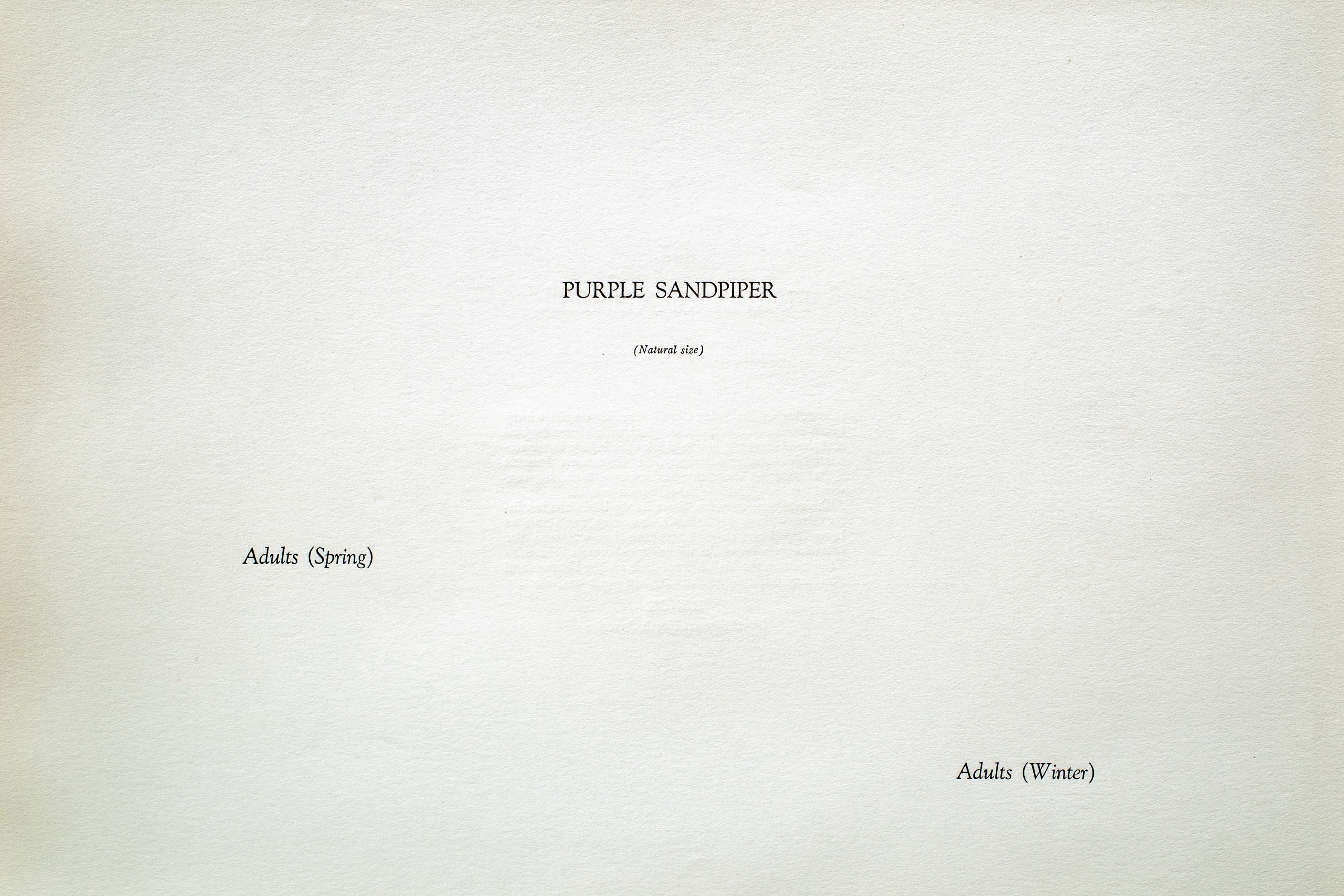 A member of the Snipe Family feeding on the wintry beach seems as much out of place as a Hummingbird and the observer is apt to think that injury has interrupted his southern journey. I have seen PURPLE SANDPIPERS on the rocky Maine coast, searching seaweed for food, apparently indifferent to cold.
