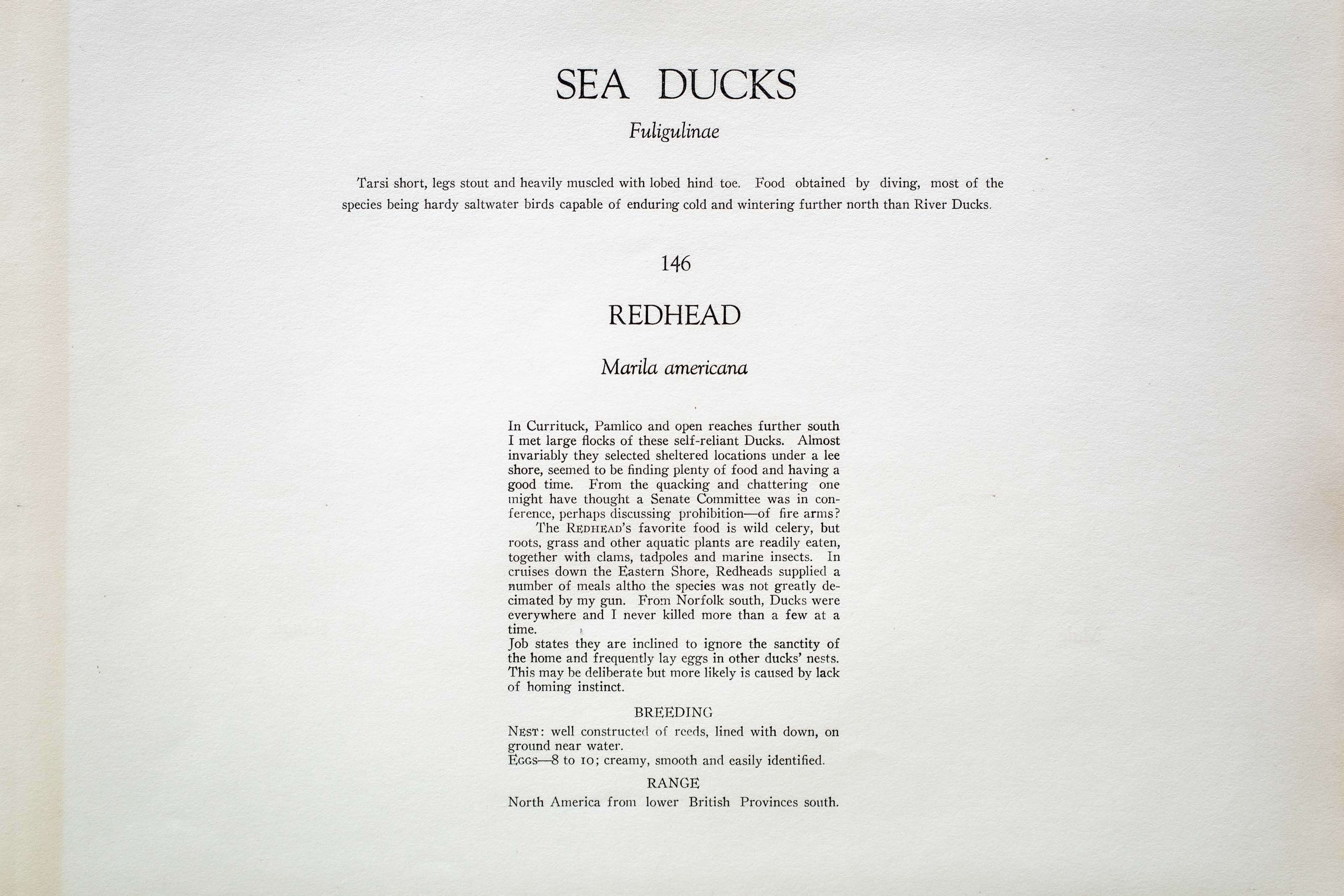 In Currituck, Pamlico and open reaches further south I met large flocks of these self-reliant Ducks. Almost invariably they selected sheltered locations under a lee shore, seemed to be finding plenty of food and having a good time. From the quacking and chattering one might have thought a Senate Committee was in conference, perhaps discussing prohibition — of fire arms?