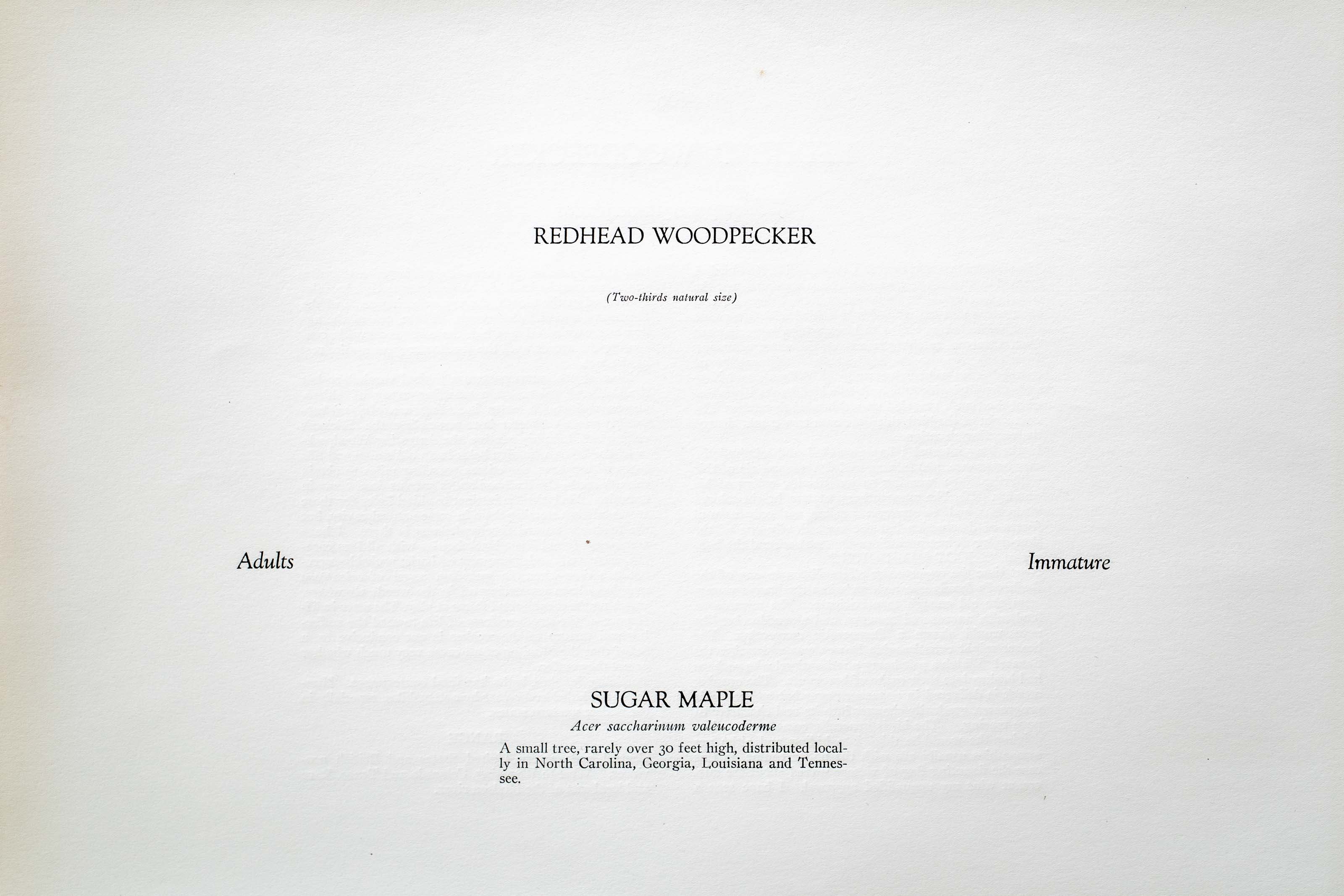 The REDHEADED WOODPECKER is one of the first birds I learned to identify and, odd as it may seem, it is not the easy task it would be under normal conditions. I was about ten years old when I saw a bird with a carmine head, white below, and with black wings, sweeping out from a treetop, catching insects on the wing, returning from each foray to the same perch. A Flycatcher of course but an exhaustive study of Wilson's and Nuttall's Ornithologies (the only two bird books I possessed at the time), revealed no red-headed flycatcher. The next sight of the bird, this time on a tree trunk, cleared the puzzling situation.