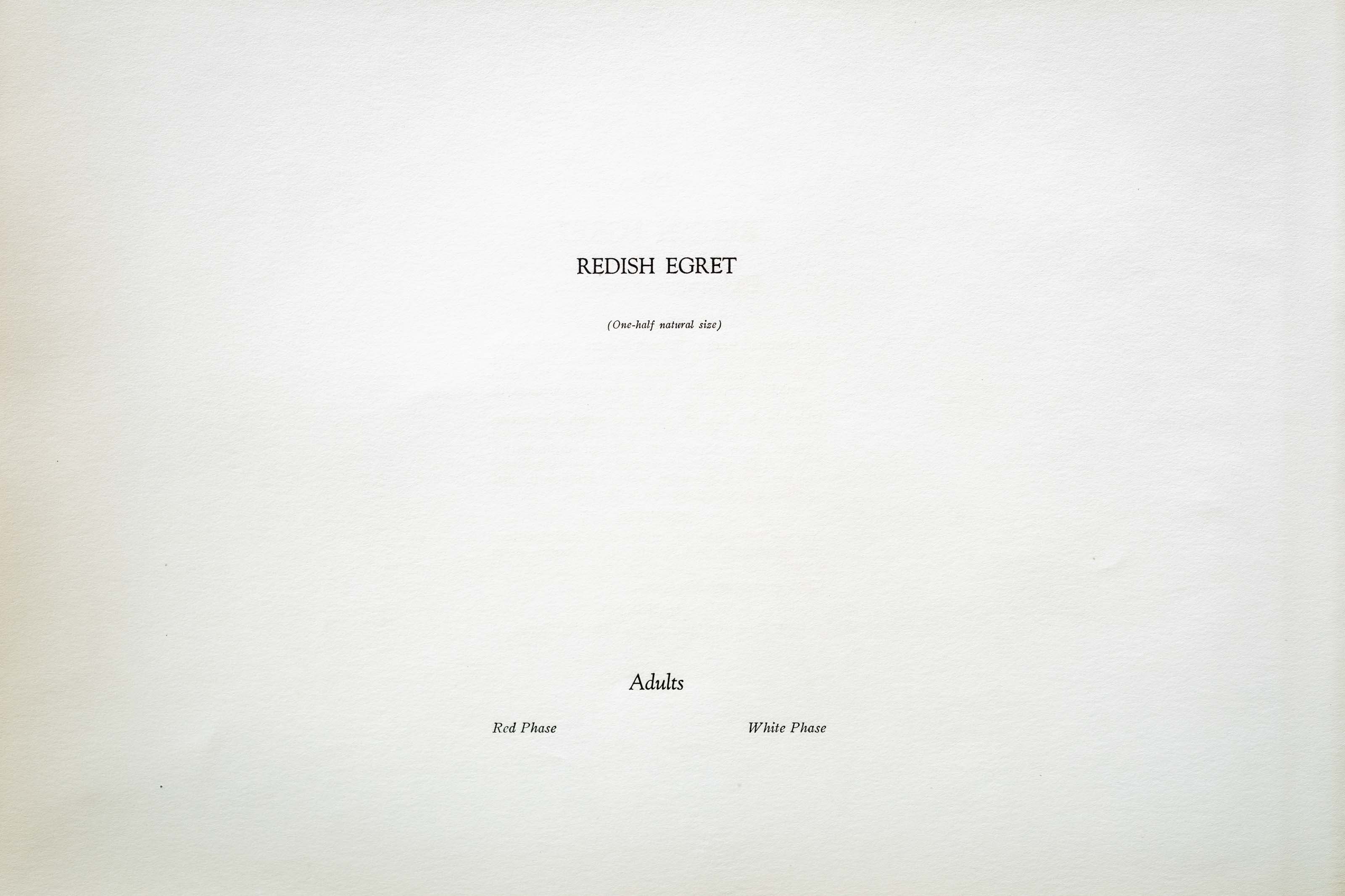An abnormal trait of REDISH EGRETS is their persistency in standing by their nests for hours, bristling their plumes and warding off imaginary attacks, then calmly watching a Grackle destroy the eggs without the slightest attempt to repel the thief!