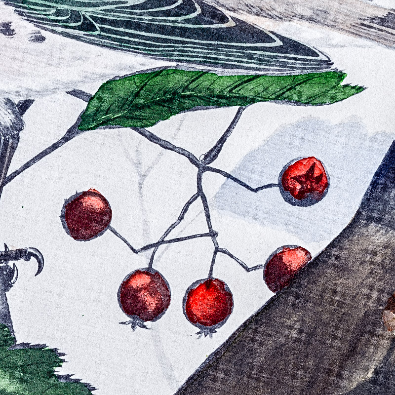 "Weel, it's gude ter see the Fieldfares here -- bonny as on the moors o' home. Our birds hav' no' ther red."