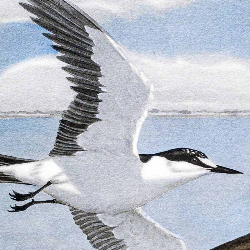 Like other Terns they follow small fish driven to the surface by larger ones and are convinced the ground around their homes belongs to them. This sense of possession is so strong that every bird must land in his own yard or be attacked by those whose domain it invades.