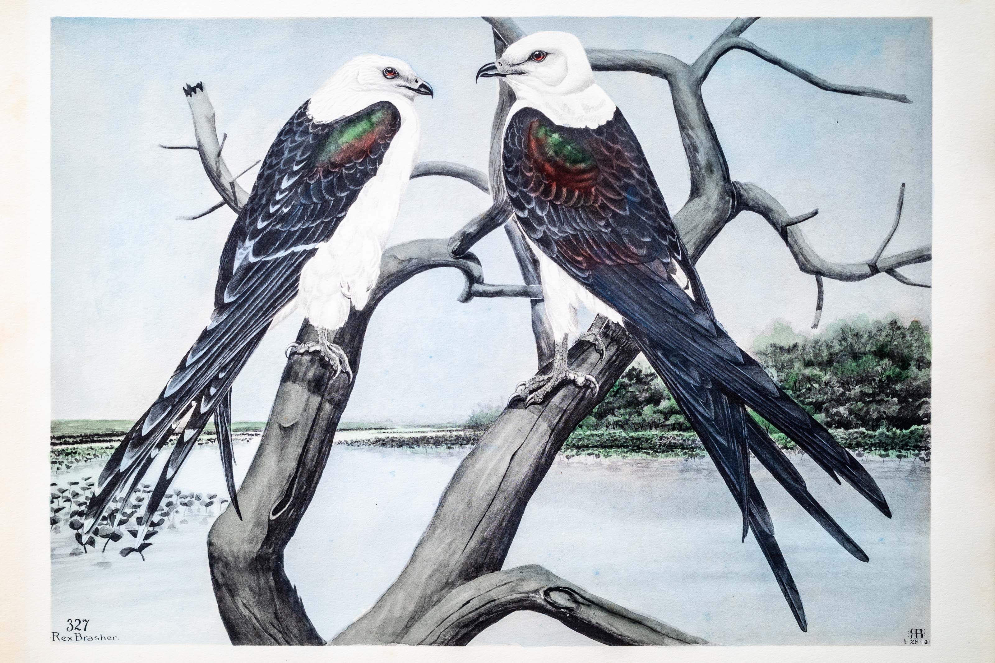 In Florida Everglades where the Miami River rises, I had the pleasure and satisfaction of studying these remarkable birds. Gifted with extraordinary wing and tail surfaces they live almost entirely in the air, floating, soaring and circling with all the buoyancy and dash of their minor prototypes the Barn Swallows, to whom they bear a singular resemblance in shape, color, action and superlative wing power — in fact in nearly everything but size.