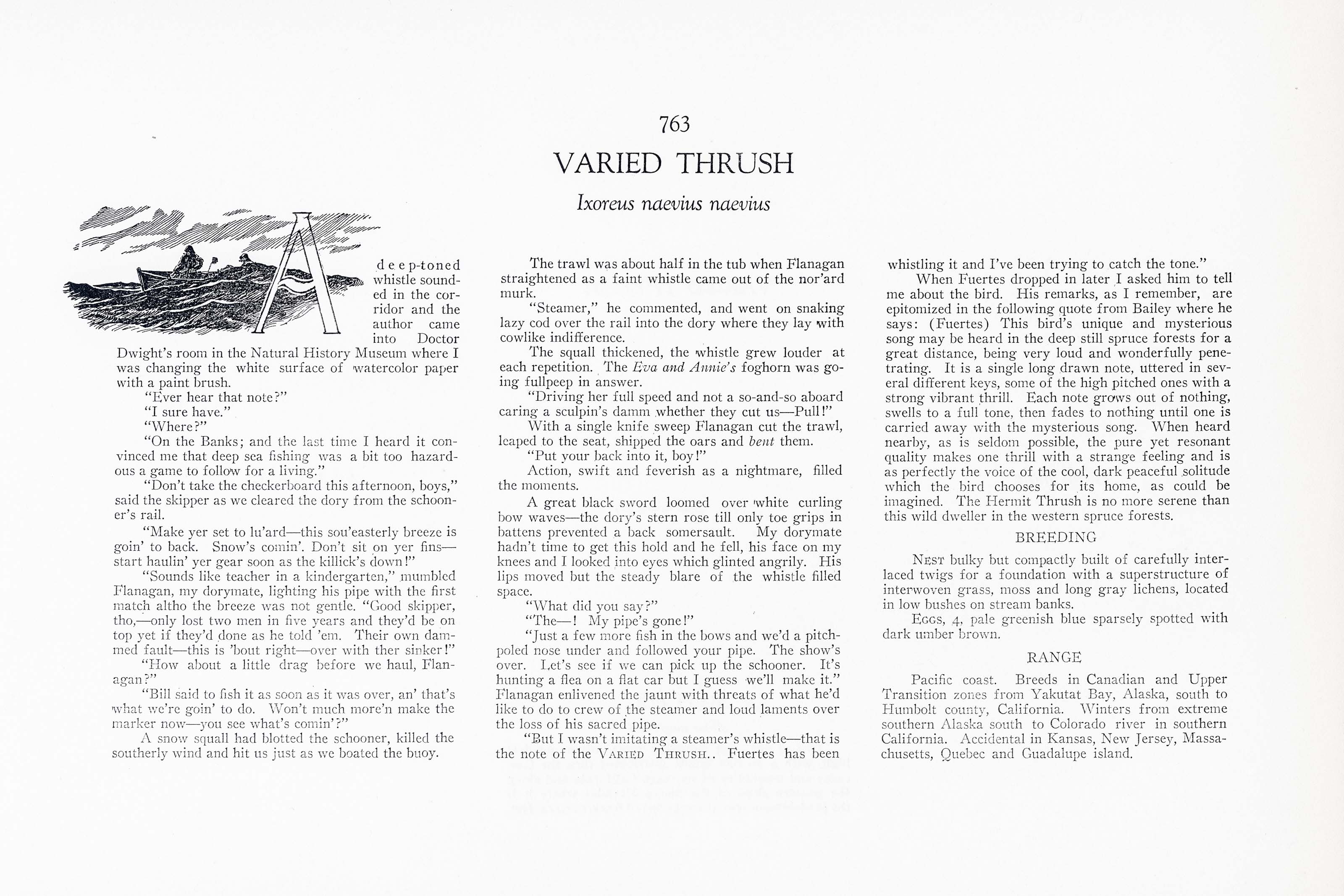 "But I wasn't imitating a steamer's whistle — that is the note of the VARIED THRUSH. Fuertes has been whistling it and I've been trying to catch the tone."