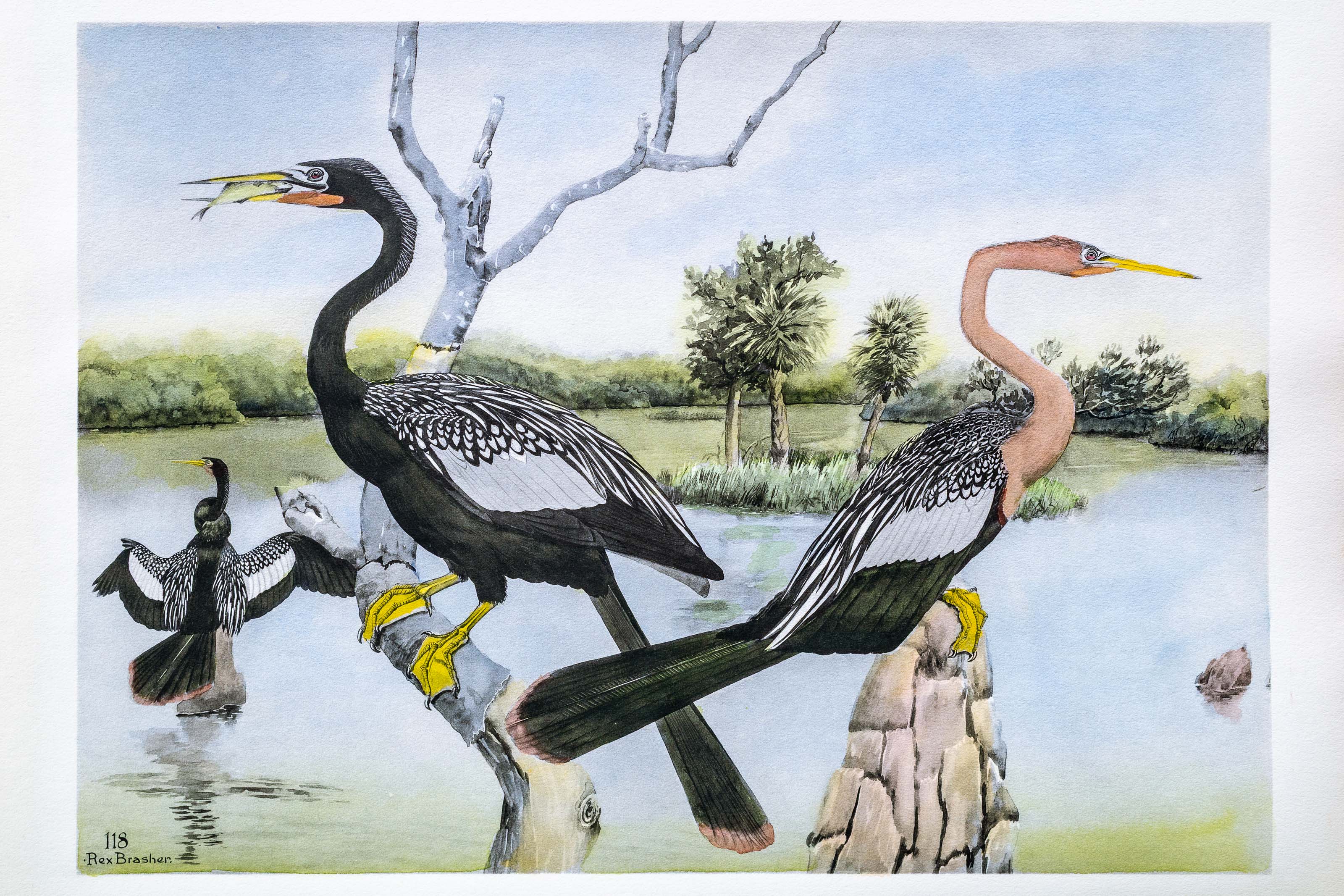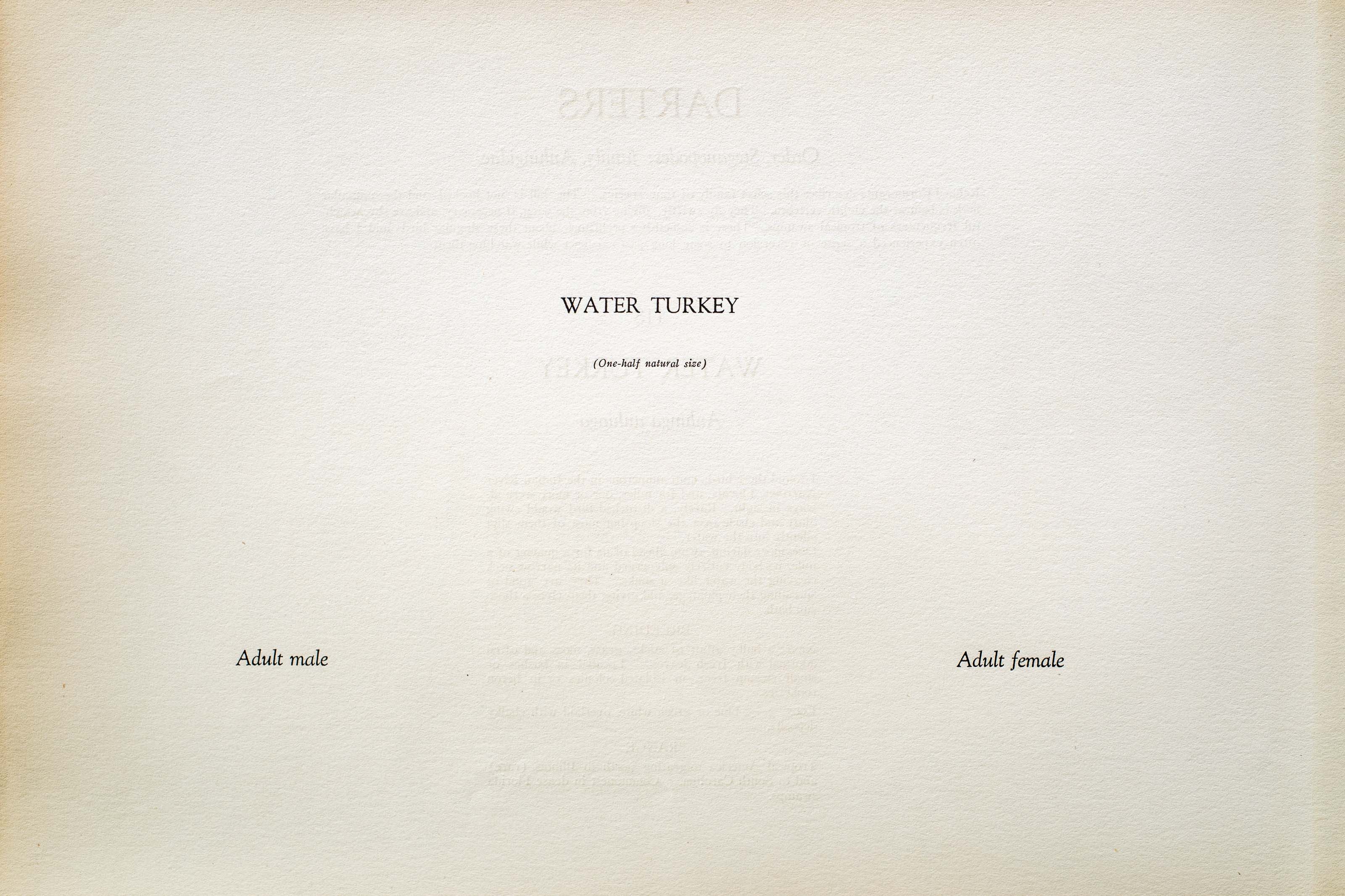 One, more daring, swam ahead of us for a quarter of a mile, its body entirely submerged and its narrow neck cleaving the water like a snake. They are fond of spreading their plumage, and giving themselves a thoro sun bath.