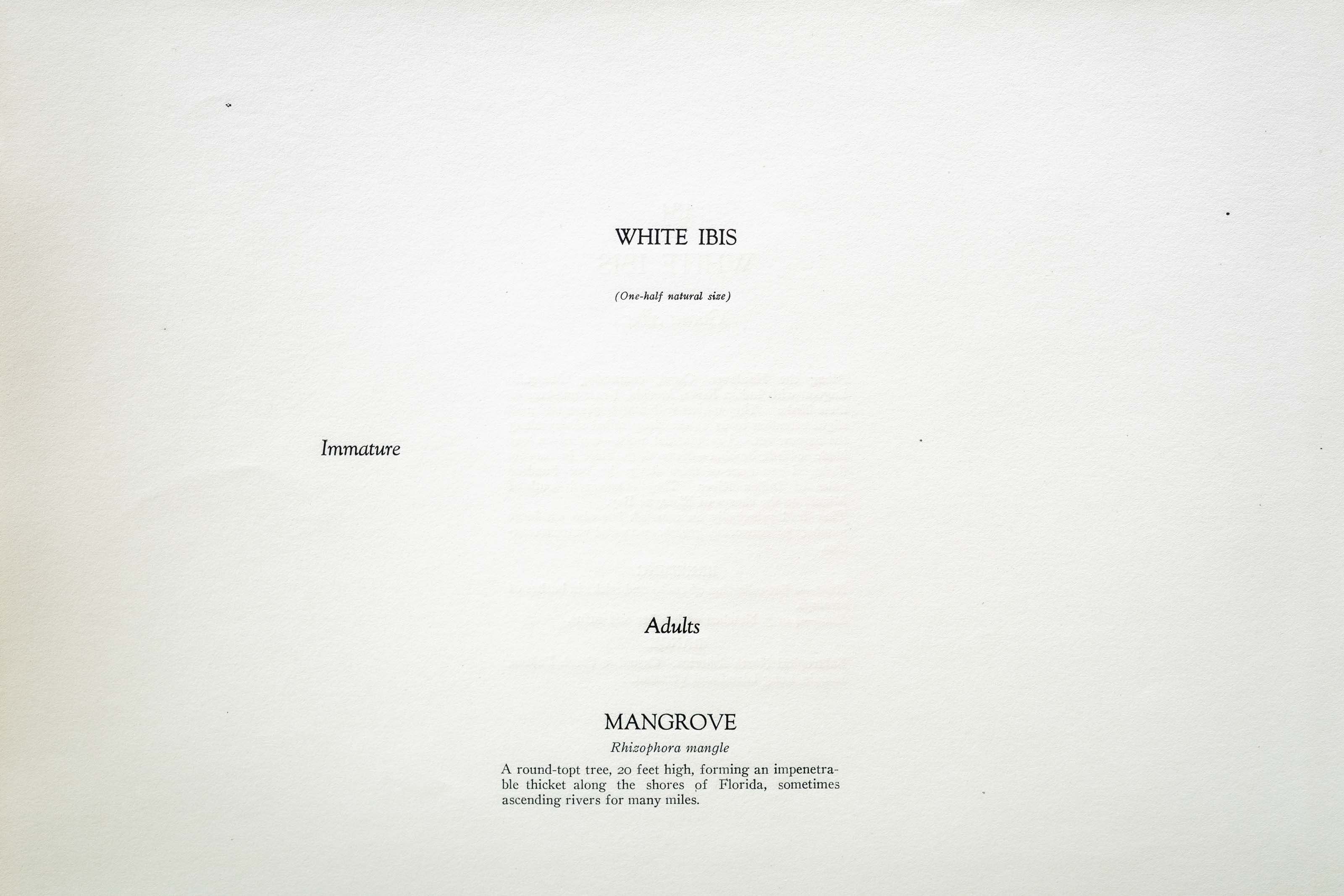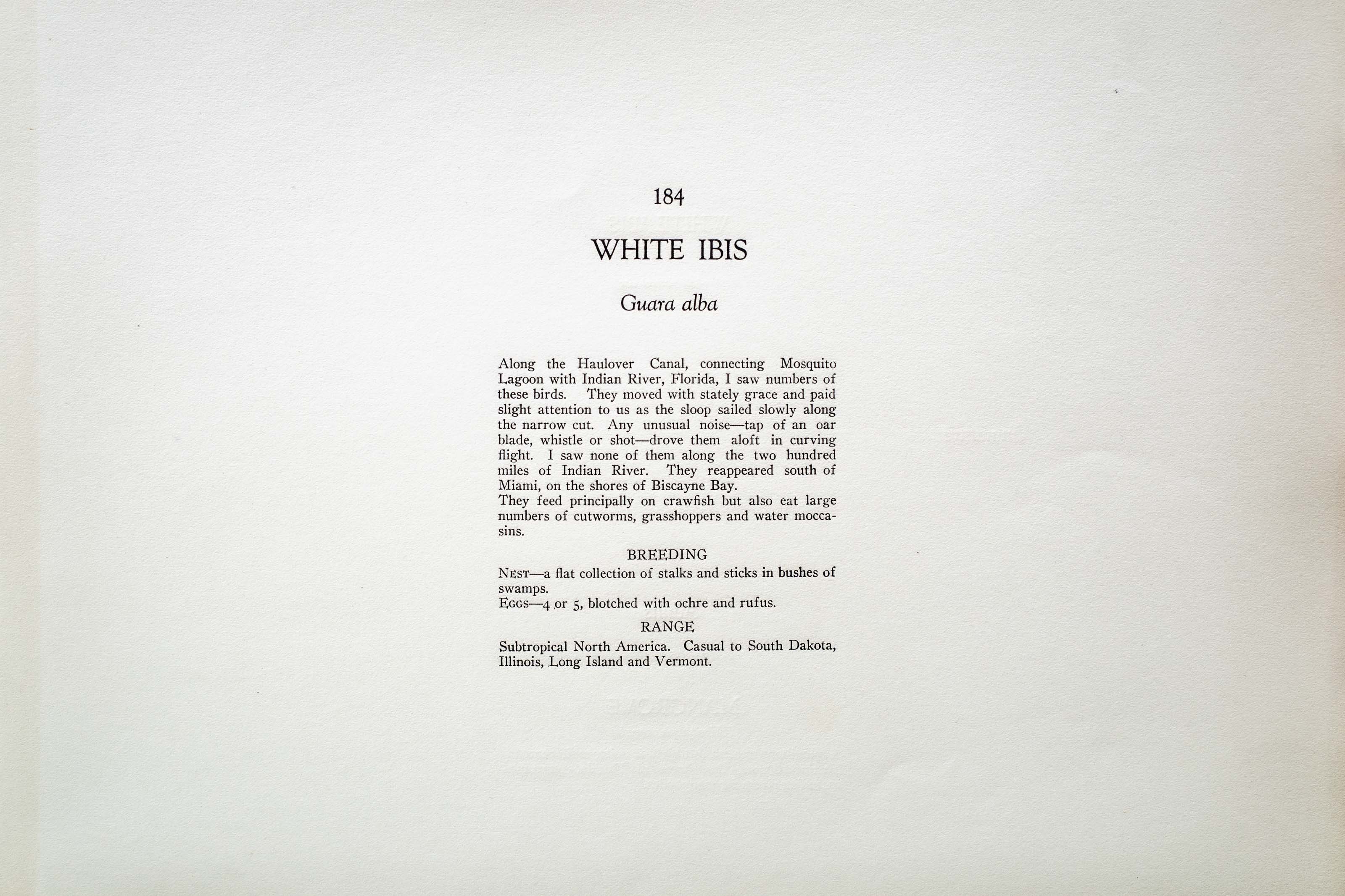 Along the Haulover Canal, connecting Mosquito Lagoon with Indian River, Florida, I saw numbers of these birds. They moved with stately grace and paid slight attention to us as the sloop sailed slowly along the narrow cut. Any unusual noise — tap of an oar blade, whistle or shot — drove them aloft in curving flight. I saw none of them along the two hundred miles of Indian River. They reappeared south of Miami, on the shores of Biscayne Bay.