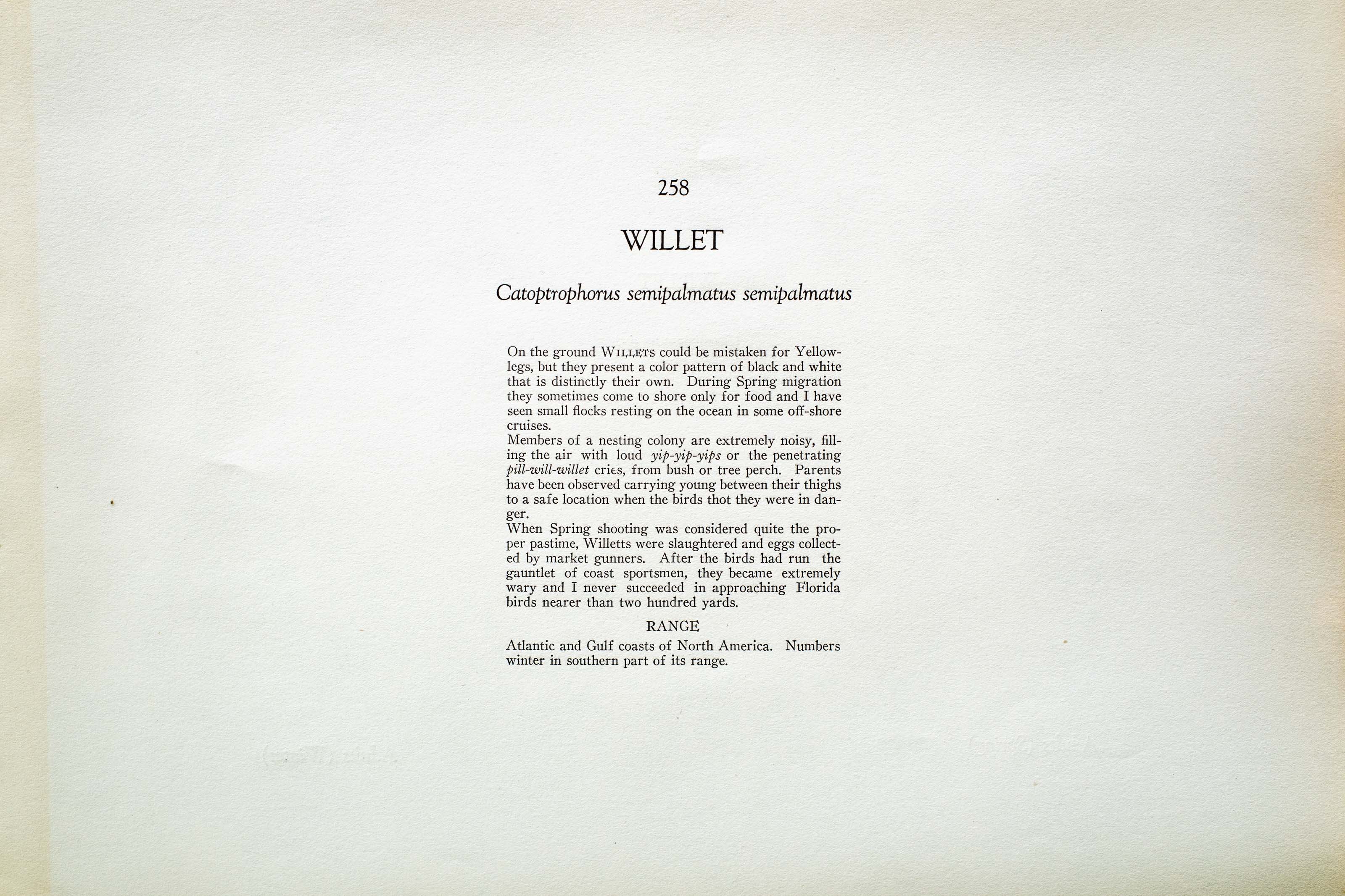 When Spring shooting was considered quite the proper pastime, Willets were slaughtered and eggs collected by market gunners. After the birds had run the gauntlet of coast sportsmen, they became extremely wary and I never succeeded in approaching Florida birds nearer than two hundred yards.