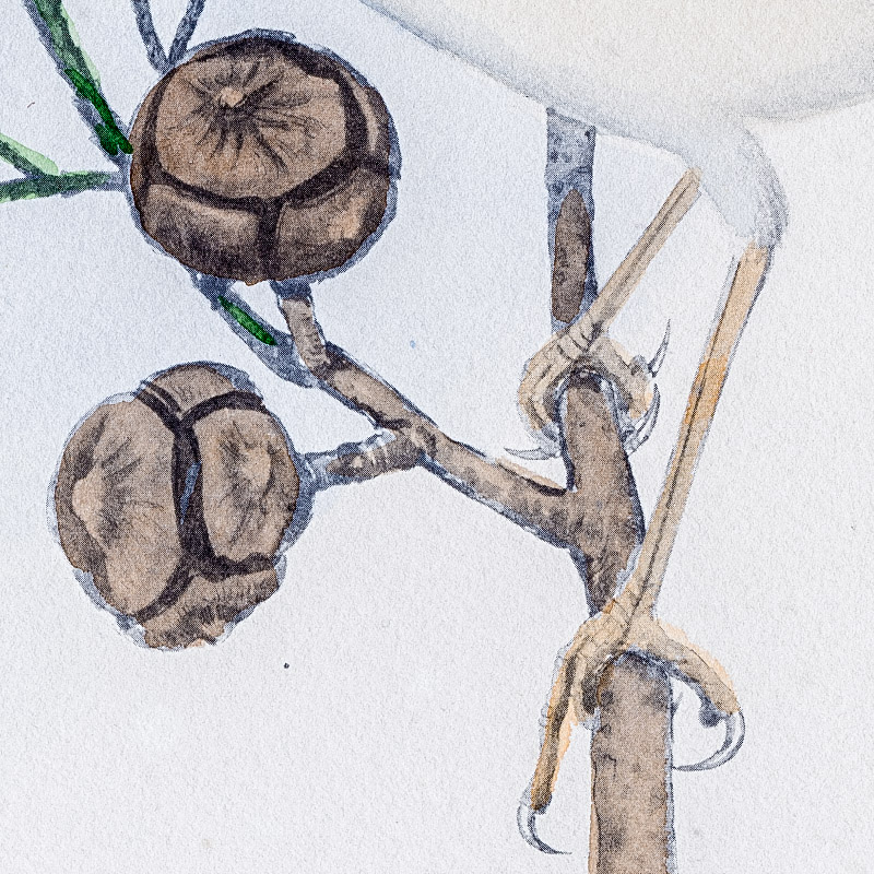 A 50-foot tree distributed widely thru California coast regions from Sonoma county to San Diego mountains, ascending to 3000 feet in central part of the State.