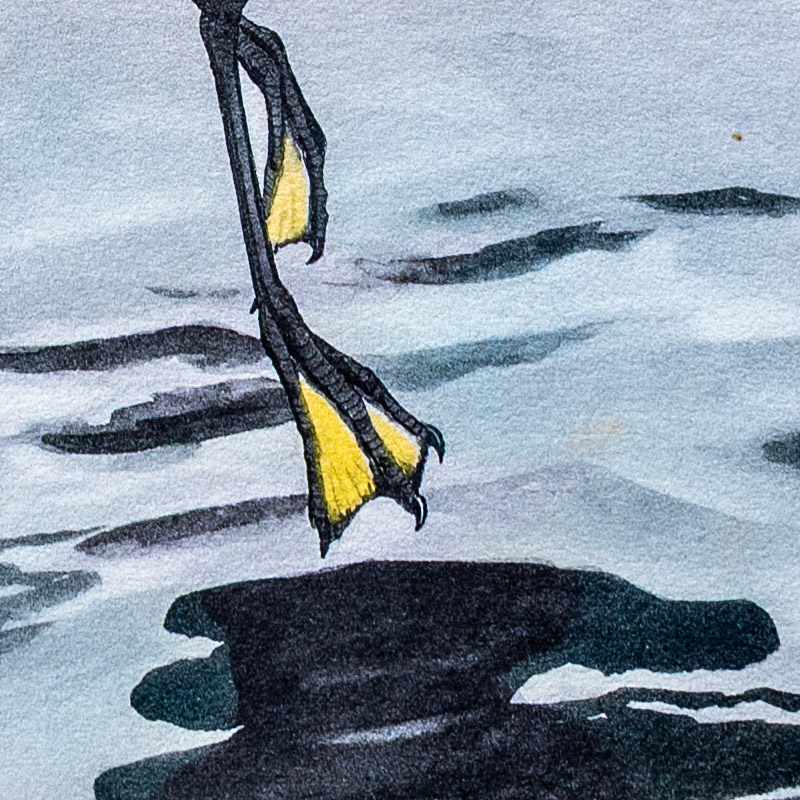 They are easily distinguished from other species by the long, yellow spotted feet extending beyond the tail.