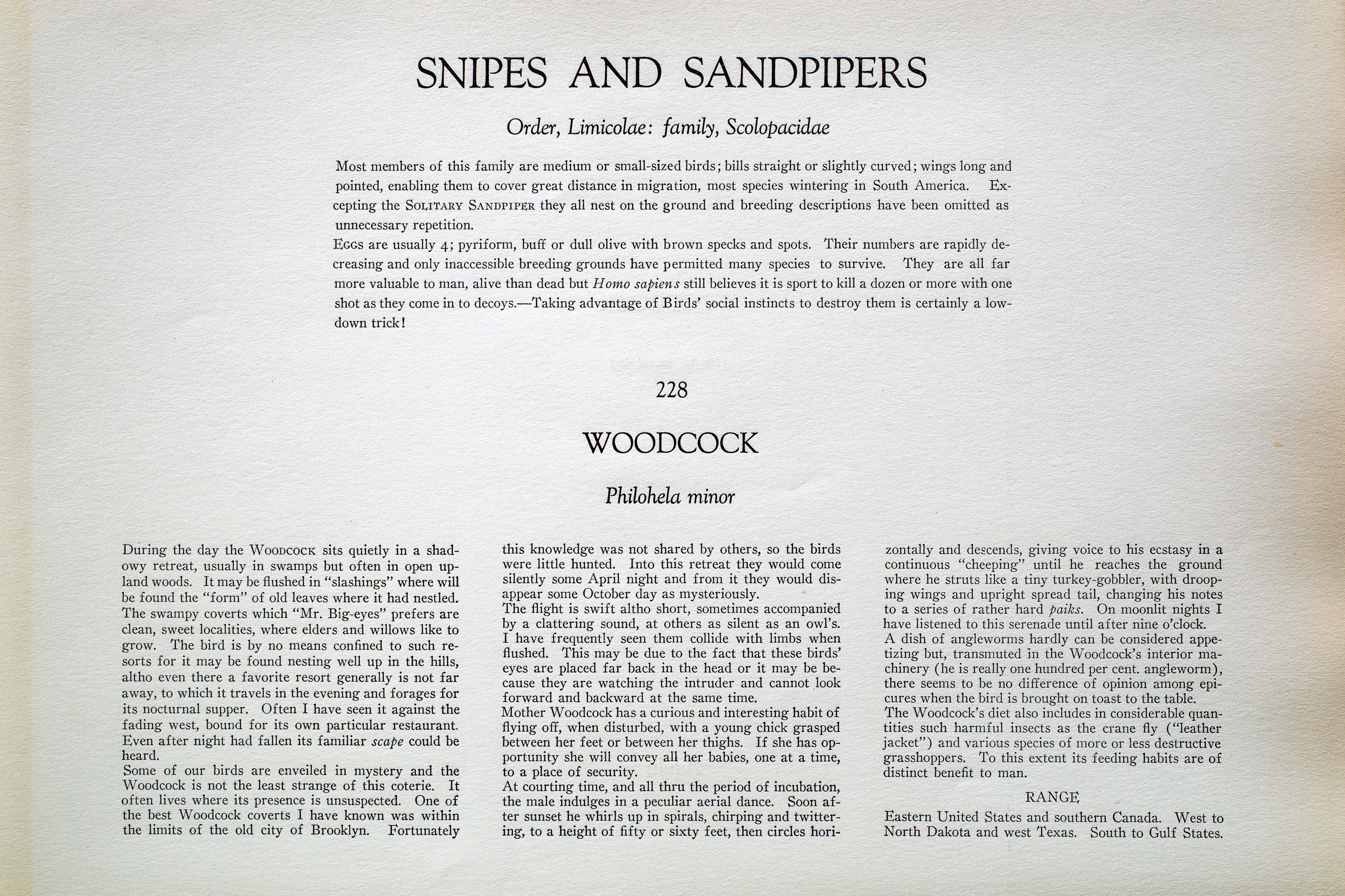 Some of our birds are enveiled in mystery and the Woodcock is not the least strange of this coterie. It often lives where its presence is unsuspected. One of the best Woodcock coverts I have known was within the limits of the old city of Brooklyn. Fortunately this knowledge was not shared by others, so the birds were little hunted. Into this retreat they would come silently some April night and from it they would disappear some October day as mysteriously.