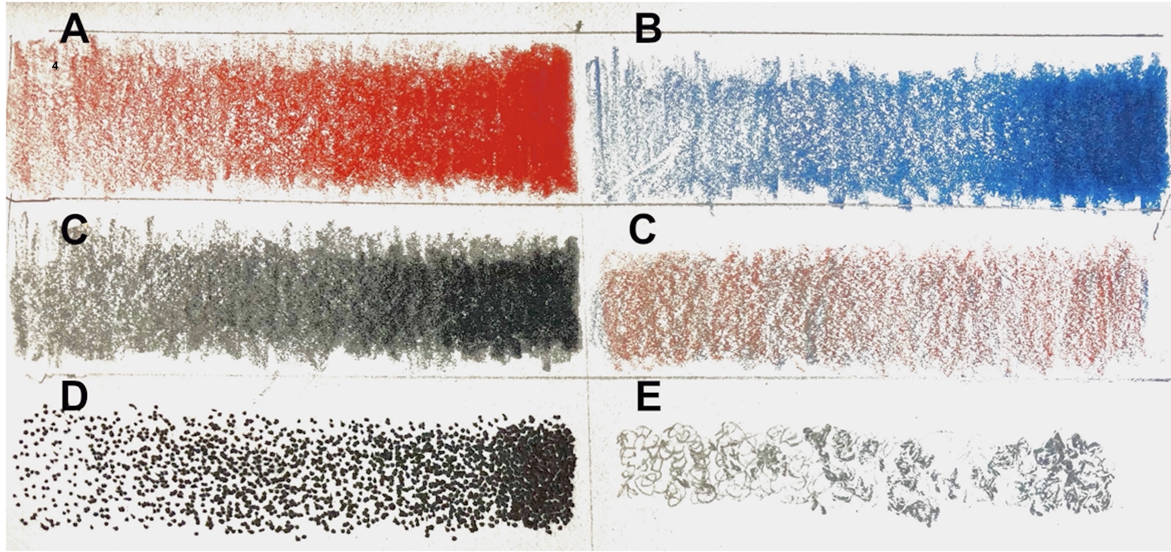 When an artist uses colored pencils on white paper, a wide tonal range can be achieved by changing the pressure. Light pressure allows the white background to show through, while heavier pressure fills in the paper and increases the tone or value. Cross-hatching provides another method, and layering one color over another deepens the tone. In pointillism, varying the density and pattern of small dots creates darker and lighter shades, a technique still used in scientific illustration to emphasize important details. Some printing processes, especially collotypes, employ irregular clusters and sizes of ink dots to produce wide variations of tone. In watercolor, varying the ratio of pigment to water allows painters to mix tones across a large range. The inherent transparency of watercolor enables an artist to achieve a remarkable depth of tone.